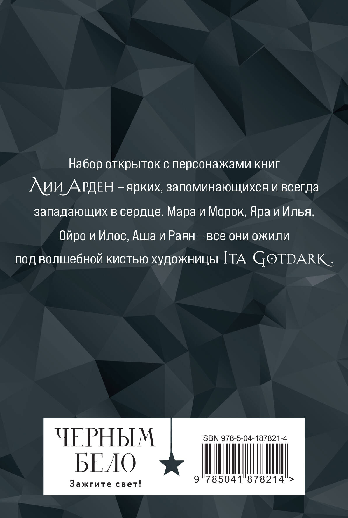 Набор открыток с персонажами книг Лии Арден - ярких, запоминающихся и всегда западающих в сердце. Мара и Морок, Яра и Илья, Ойро и Илос, Аша и Раян - все они ожили под волшебной кистью художницы Ita Gotdark. В набор входит 17 открыток на плотном картоне: 13 из одноименного календаря и 4 эксклюзивных, созданных художницей специально для этого проекта. Лия Арден - феномен русскоязычного фэнтези. Автор, чьи книги не покидают топов продаж, а их общий тираж приближается к миллиону экземпляров. В этом наборе представлены любимые персонажи книг Лии Арден из циклов «Смерть и Тень», «Потомки Первых», «Четыре дракона», «Нити судьбы», а также одиночной истории «Невеста Ноября», которая каждый год переиздается в оформлении нового художника. Открытки из этого набора станут прекрасным арт-элементом для оформления интерьера, закладкой для книг и помогут читателю визуализировать персонажей, придуманных Лией Арден, ведь каждый рисунок был создан при ее непосредственном участии.| Издательство | ООО "Издательство "Эксмо" |