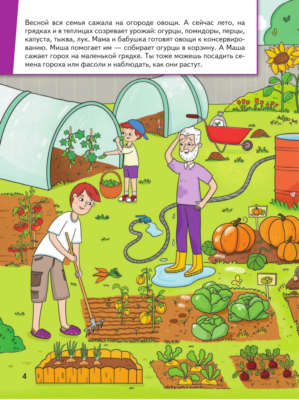 Многие родители тревожатся о том, как их малыши будут вести себя в незнакомых местах, ведь они только познают этот мир. Даже если вы уже возили своего ребёнка на дачу, он мог был слишком мал, чтобы что-то запомнить. Виммельбух про Мишу и Машу может стать для него путеводителем по дачной жизни, и подготовить его к первому соприкосновению с живой природой. Рассматривая картинки в этой книге, ребёнок узнает где и как растут овощи, фрукты и ягоды, какие бывают домашние животные и их детёныши. Кроме того, на примере героев книги малыш узнает, что можно, а что нельзя делать на даче. Виммельбух про Мишу и Машу не только способствует социальной адаптации ребёнка, но и развивает фразовую речь, пространственное и образное мышление.| Издательство | Просвещение |