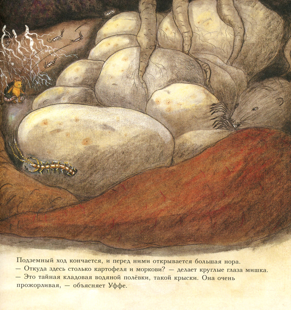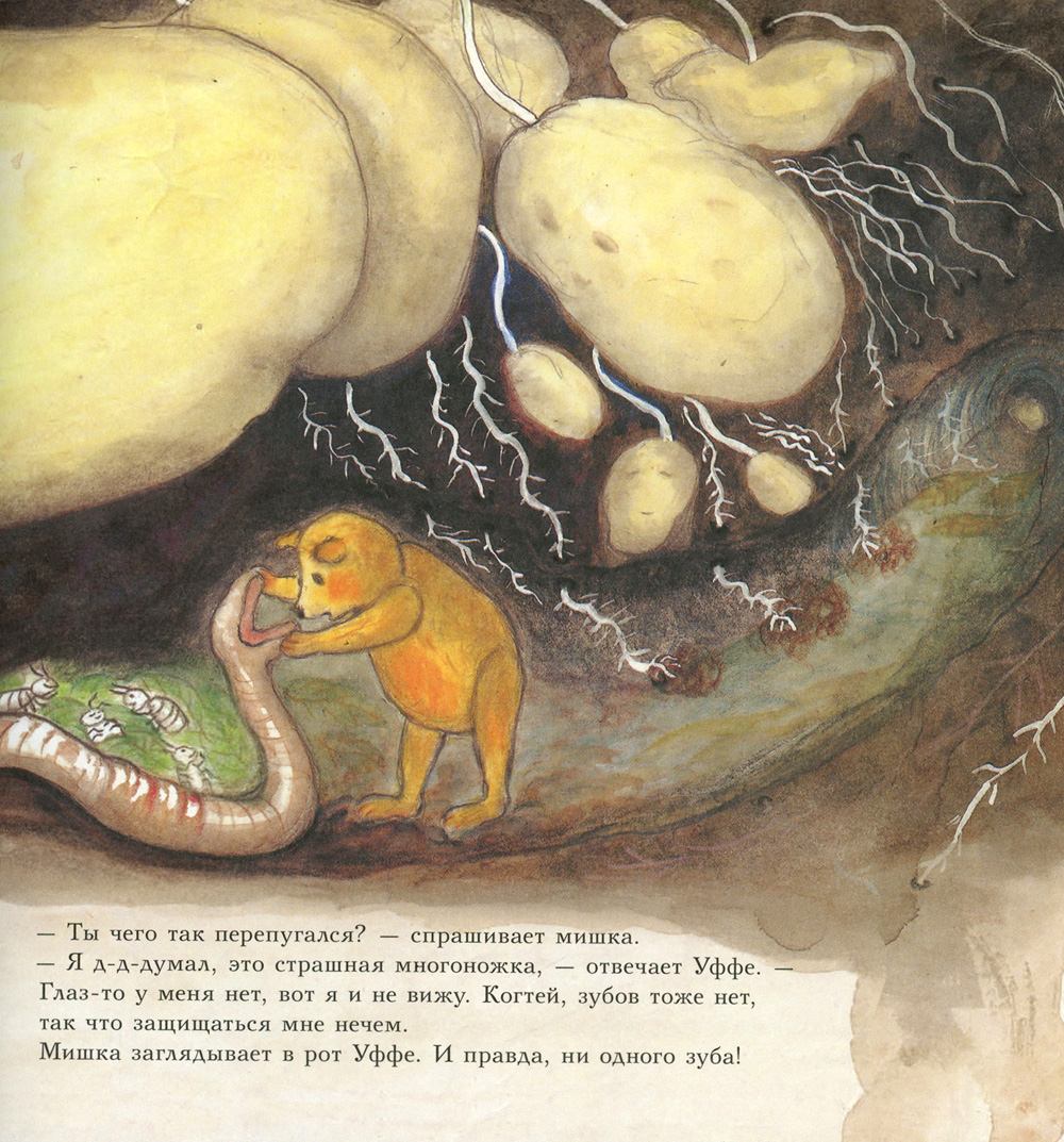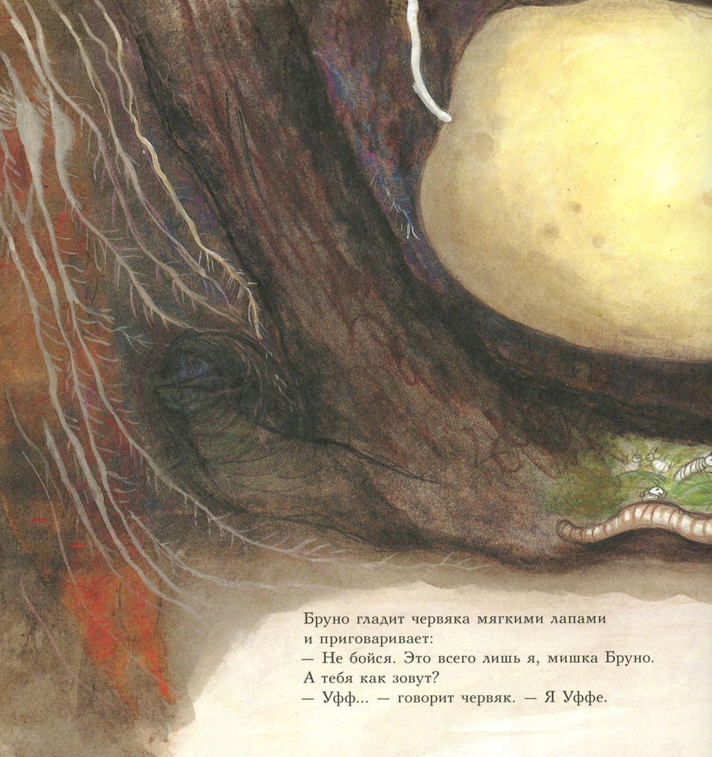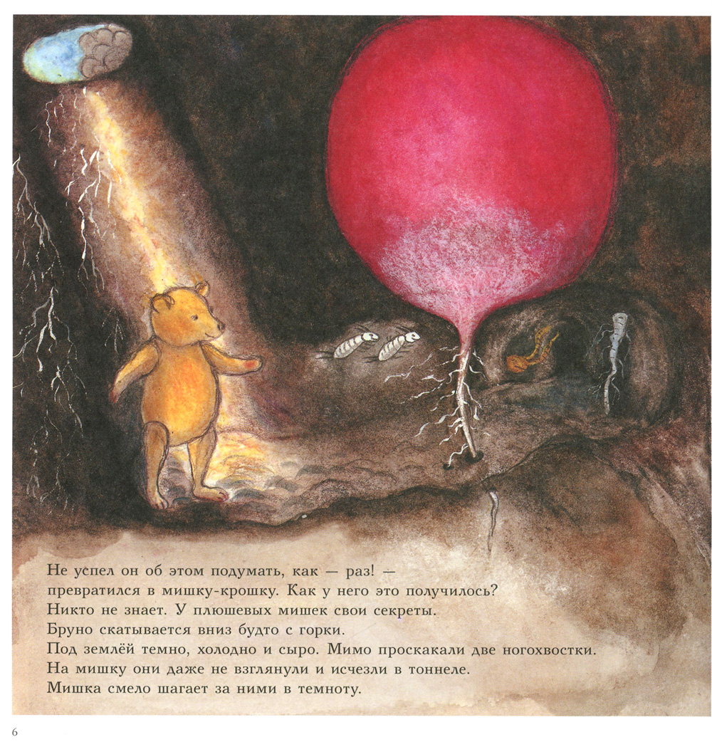 В этом сборнике мишка Бруно наблюдает за жизнью маленьких обитателей своего сада. Став крошкой, он скатывается в подземный ход, где знакомится с дождевым червяком Уффе, спасает его от свирепой многоножки и весь день проводит в его владениях. А потом встречает кузнечика Типпе, помогает ему найти невесту и устраивает у себя в саду весёлую свадьбу. И конечно, мишка Бруно не забывает вести свой дневник. Он аккуратно записывает в него всё самое интересное, что увидел во время долгих прогулок на природе.