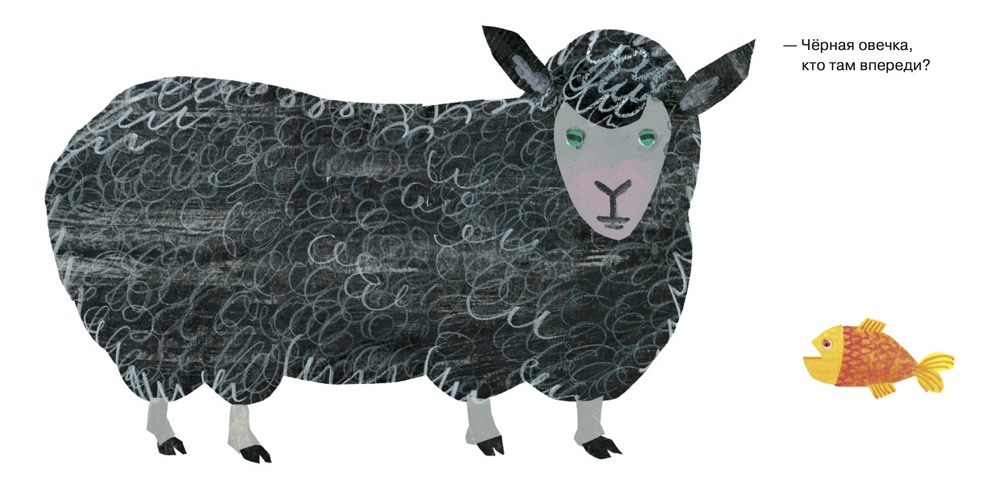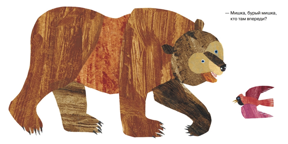 Эта удивительная книжка - плод сотрудничества любимого нами (и, надеемся, вами тоже) книжного художника, гениального придумщика Эрика Карла и пока менее известного в России, но хорошо знакомого всем американским читателям поэта, школьного учителя, специалиста по раннему детству Билла Мартина младшего. Звучные, ритмичные стихи Билла Мартина адресованы самым маленьким читателям, которые с радостью подхватывают их и повторяют вслед за взрослым "Кто там впереди?". Те, кто помладше, конечно, будут повторять отдельные, хорошо удающиеся звуки, а те, кто постарше, быстро выучат наизусть это не очень-то длинное, но замечательное стихотворение. Эрик Карл демонстрирует в книжке свой фирменный стиль: на белом фоне - крупные рисунки разных животных (бурый медведь, птица, лошадь, кошка, овца). У каждого животного свой цвет - неоднородный, а как будто собранный из разных кусочков и текстур (множество оттенков и разнообразных техник - все, как любит Эрик Карл и мы, его читатели).Отдельное удовольствие в "Буром мишке" - это открывающиеся-закрывающиеся окошки. За словами прячутся картинки. Наверняка ваши малыши оценят эту хитрость по достоинству и будут не только слушать книжку, но и "открывать" ее. Хорошего чтения и веселой игры!
