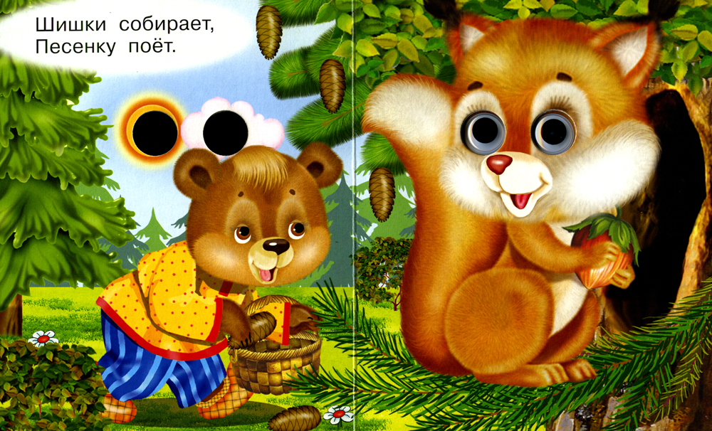 Серия мини-книжек для самых маленьких малышей "Ладушки-глазки" на плотном картоне с яркими иллюстрациями. В ней изображены герои сказки «Мишка косолапый». Все герои сказки вместо глазок имеют прорези. А на последней странице находятся вращающиеся пластмассовые глазки, которые при переворачивании страницы вставляются в эти прорези. Книжка имеет 10 картонных иллюстрированных страниц в стихах.| Издательство | ТД Сказочный мир |