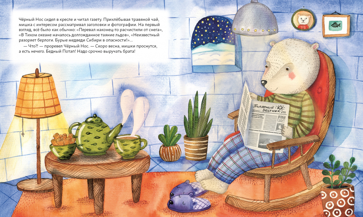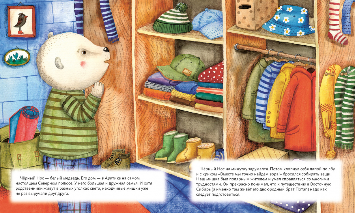 <div class="b-post-content _bookPage"><h2 id="o-chyem">О чём</h2><p>Добрая познавательная история, красивые иллюстрации, которые хочется долго рассматривать и обсуждать, - всё это есть в книгах Анны Федуловой. </p><p>В таёжном лесу творится что-то неладное: кто-то залезает в берлоги и будит медведей раньше времени. Но Чёрный Нос и его друзья-мишки во всём разберутся и узнают, кто оставляет на снегу загадочные следы. С этой книгой ребята познакомятся с жителями сибирской тайги, узнают, какие следы оставляют разные животные и как зимуют бурые медведи.</p><div class="box _cite"><div class="i-cite"><p class="i-cite__text"> «Чёрный Нос сидел в кресле и читал газету. Прихлёбывая травяной чай, мишка с интересом рассматривал заголовки и фотографии. На первый взгляд, всё было как обычно: "Перевал наконец-то расчистили от снега", "В Тихом океане началось долгожданное таяние льдов", "Неизвестный разоряет берлоги. Бурые медведи Сибири в опасности!"... - Что?! - проревел Чёрный Нос. - Скоро весна, мишки проснутся, а есть нечего. Бедный Потап! Надо срочно выручать брата!» </p></div></div><h2 id="dlya-kogo">Для кого</h2><p>Подойдёт для совместного чтения с ребятами от 3 лет и для самостоятельного чтения с 6 лет.</p></div>| Издательство | Альпина |