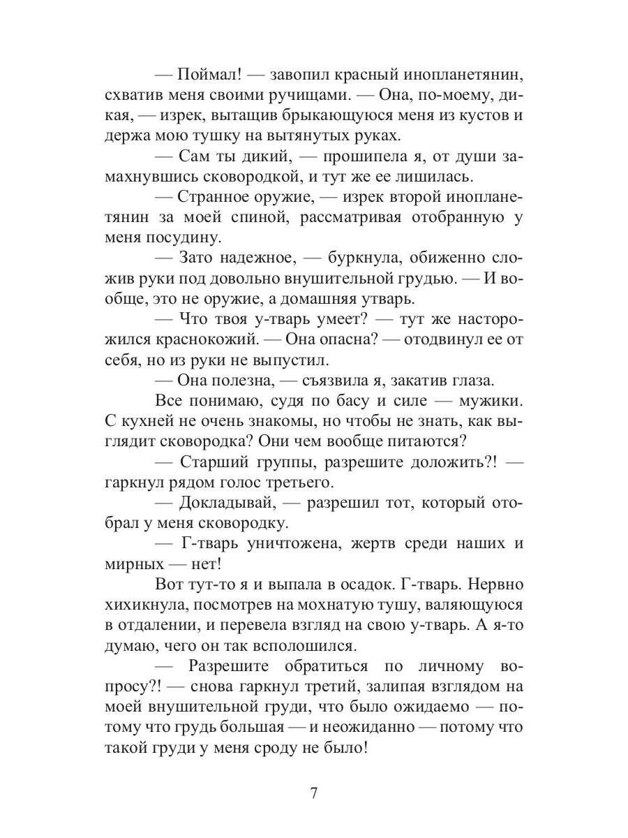 Еще минуту назад я стояла на своей кухне, а сейчас падаю с огромной высоты и безликий голос советует мне махать крыльями. За спиной пусто, в руках сковородка и я все так же продолжаю падать. И тут выясняется, что произошла ошибка, мне надо бежать, а не лететь, и умирать никак нельзя, иначе богу не засчитают курсовую. Мир сошел с ума? Неудивительно, с таким-то богом! Вот только мне в этом мире теперь надо как-то выжить, еще и кучу мужиков прокормить, имея при себе одну лишь сковородку и опыт прожитых лет.