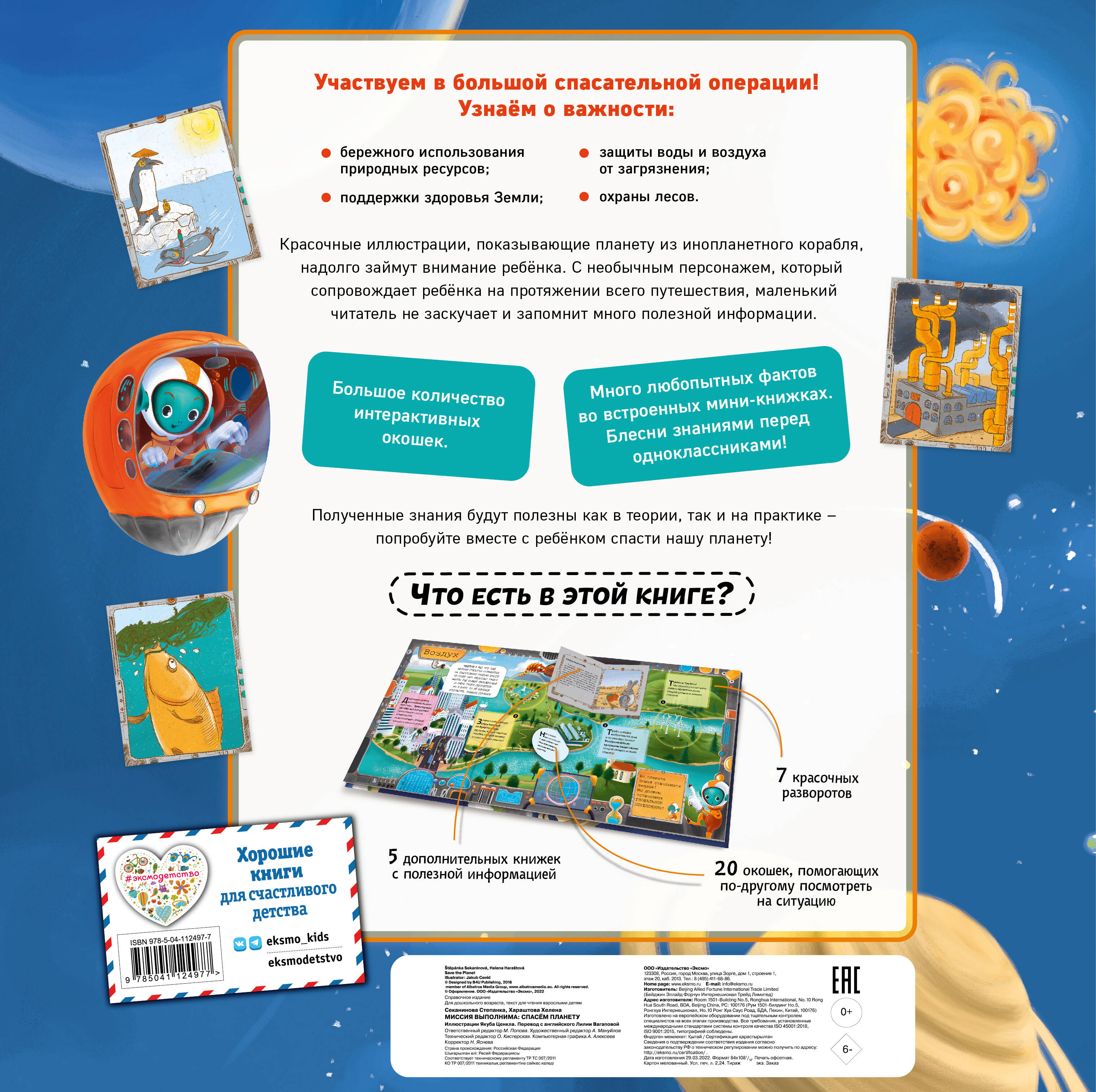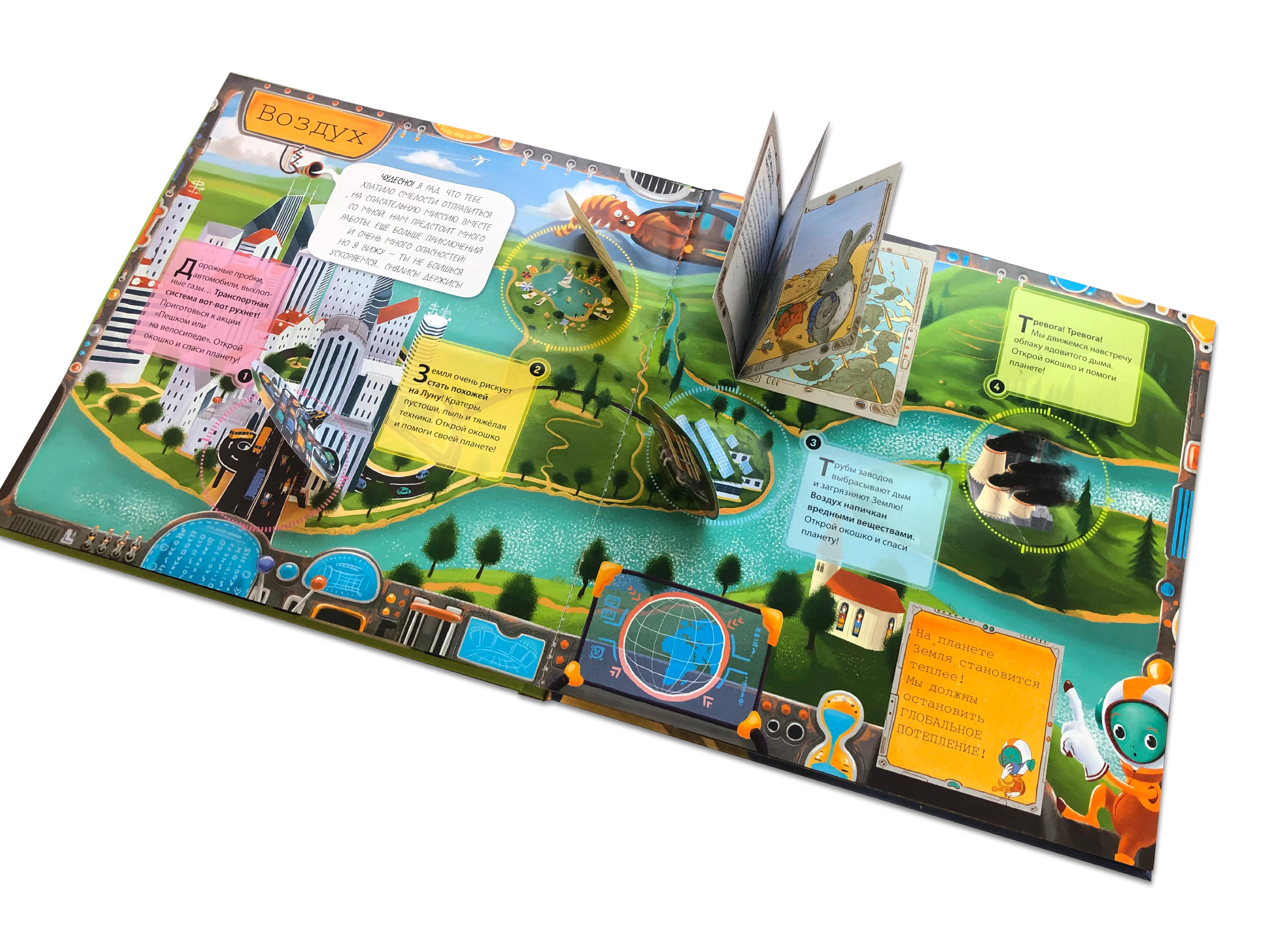 Миссия выполнима: отправляемся на большую спасательную операцию, чтобы предотвратить глобальные катастрофы на нашей планете! С этой книгой мы узнаем: 1. Отчего возникает загрязнение природы - воды, почвы и воздуха. 2. Чем нам грозят лесные пожары. 3. Как можно дать вторую жизнь старым вещам и помочь природе. Способы решения этих и многих других экологических проблем мы найдём с помощью множества интерактивных элементов внутри книги. Открой окошко - и измени мир! Эта игровая мини-энциклопедия рассчитана на широкий круг читателей: самых маленьких детей книга увлечёт большим количеством интерактивных окошек, а дети постарше узнают много любопытных фактов из встроенных мини-книжек и смогут блеснуть своими знаниями перед одноклассниками.