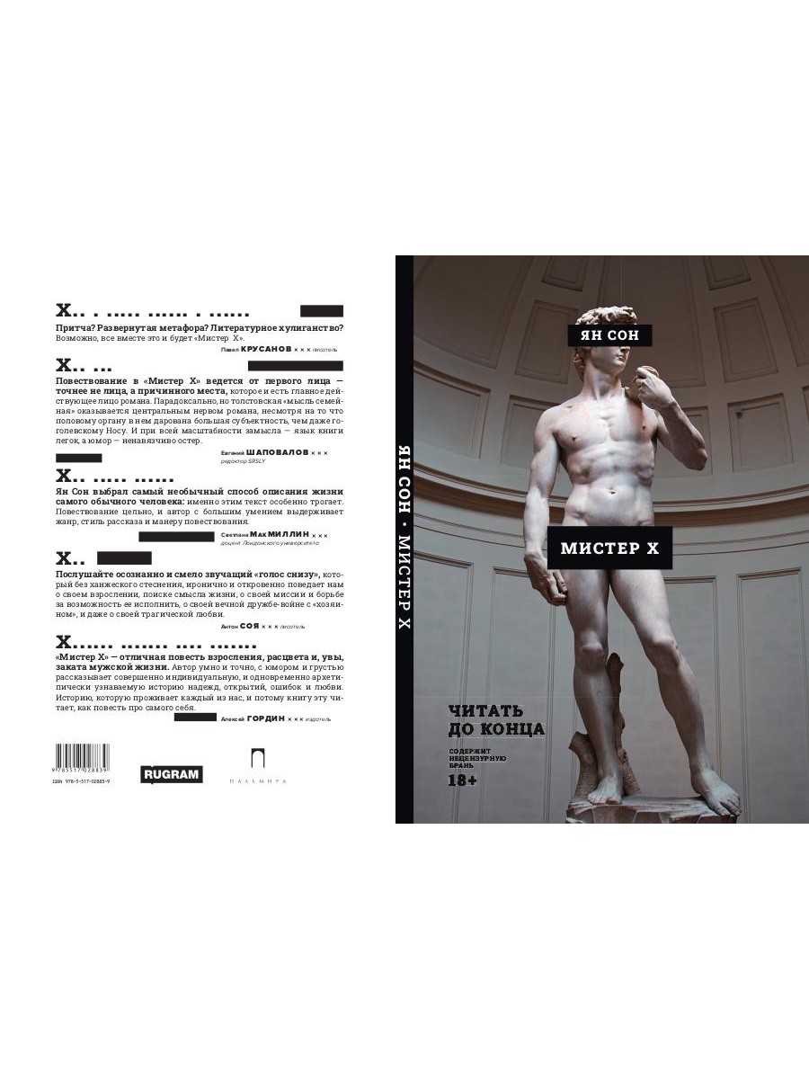 Эта книга по своему построению имитирует роман-воспитание (детство героя, юность, взросление, зрелость, золотая осень - соблюдены все условия жанра), что придает ей своего рода дополнительное измерение - автор как бы приглашает читателя в литературную игру, подразумевающую определенную культурную традицию и многоплановую структуру текста. Вместе с тем повесть написана ярким, живым, пластичным языком городской улицы, что делает ее доступной для читателей всех возрастных групп, сохранивших интерес к современной литературе. Следуя в фарватере традиции отечественной литературы, автор повести Ян Сон наделяет детородный орган своего героя сознанием, не зависимым от его большого тела. Так Гоголь поступил с носом майора Ковалева, а Шварц с тенью ученого Христиана-Теодора. Сюжетное отличие в том, что в данном случае орган понимает неразрывную связь с метрополией и не посягает на суверенитет. Однако гнет свою линию. Забавный опыт: тревожные поиски самоидентификации, подростковое самолюбование, предчувствие высшего смысла, пора цветения и, наконец, бунтарский закат, завершающийся примирением с уготованной участью. Притча? Развернутая метафора? Литературное хулиганство? Возможно, все вместе это и будет «Мистер X».| Издательство | Т8 RUGRAM |