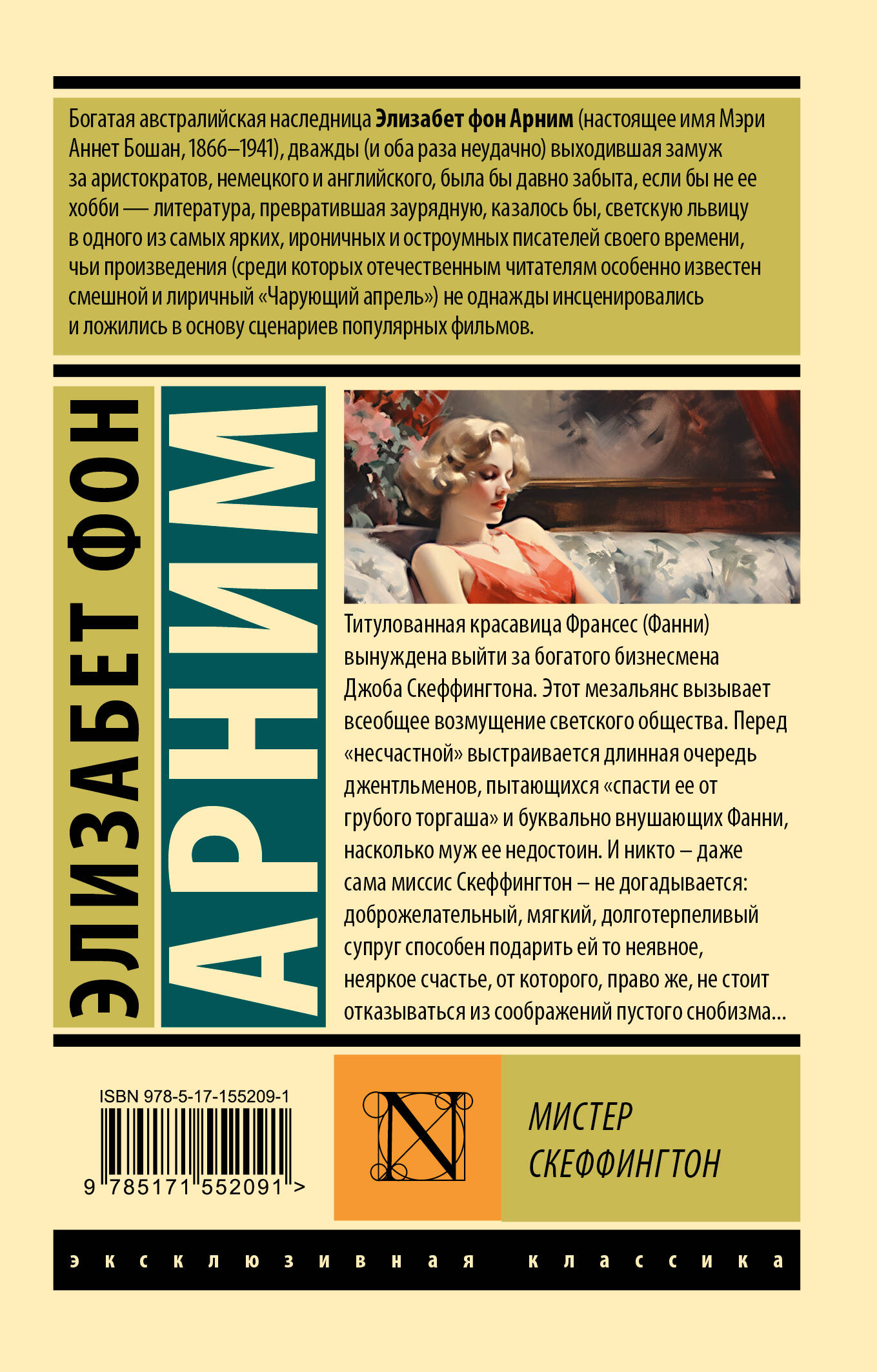 Титулованная красавица Франсес (Фанни) вынуждена выйти за богатого бизнесмена Джоба Скеффингтона. Этот мезальянс вызывает всеобщее возмущение светского общества. Перед "несчастной" выстраивается длинная очередь джентльменов, пытающихся "спасти ее от грубого торгаша" и буквально внушающих Фанни, насколько муж ее недостоин. И никто - даже сама миссис Скеффингтон - не догадывается: доброжелательный, мягкий, долготерпеливый супруг способен подарить ей то неявное, неяркое счастье, от которого, право же, не стоит отказываться из соображений пустого снобизма...| Издательство | Издательство "АСТ" |