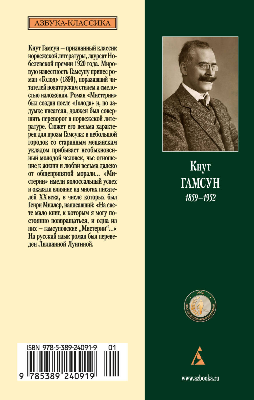 Кнут Гамсун - признанный классик норвежской литературы, лауреат Нобелевской премии 1920 года. Мировую известность Гамсуну принес роман "Голод" (1890), поразивший читателей новаторским стилем и смелостью изложения. Роман "Мистерии" был создан после "Голода" и, по задумке писателя, должен был совершить переворот в норвежской литературе. Сюжет его весьма характерен для прозы Гамсуна: в небольшой городок со старинным мещанским укладом прибывает необыкновенный молодой человек, чье отношение к жизни и любви весьма далеко от общепринятой морали... "Мистерии" имели колоссальный успех и оказали влияние на многих писателей ХХ века, в числе которых был Генри Миллер, написавший: "На свете мало книг, к которым я могу постоянно возвращаться, и одна из них - гамсуновские "Мистерии"…" На русский язык роман был переведен Лилианной Лунгиной.| Издательство | Азбука-Аттикус Издат.группа ООО |
