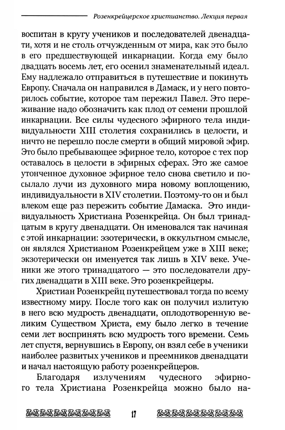 В сборник лекций основателя антропософии Рудольфа Штейнера включены девять лекций (и дополнительно - выдержки из двух), посвященных Христиану Розенкрейцу. В лекциях излагаются результаты собственных исследований Рудольфа Штейнера в сверхчувственном мире, описывается посвящение Христиана Розенкрейца в XIII в. и освещается его роль в развитии духовной жизни Европы, вскрываются глубокие духовные взаимосвязи между основоположником современной западной христианской эзотерик и основоположником буддизма, между развитием земной культуры и планетарным развитием. Для читателей, интересующихся вопросами духовной жизни.| Издательство | Энигма |