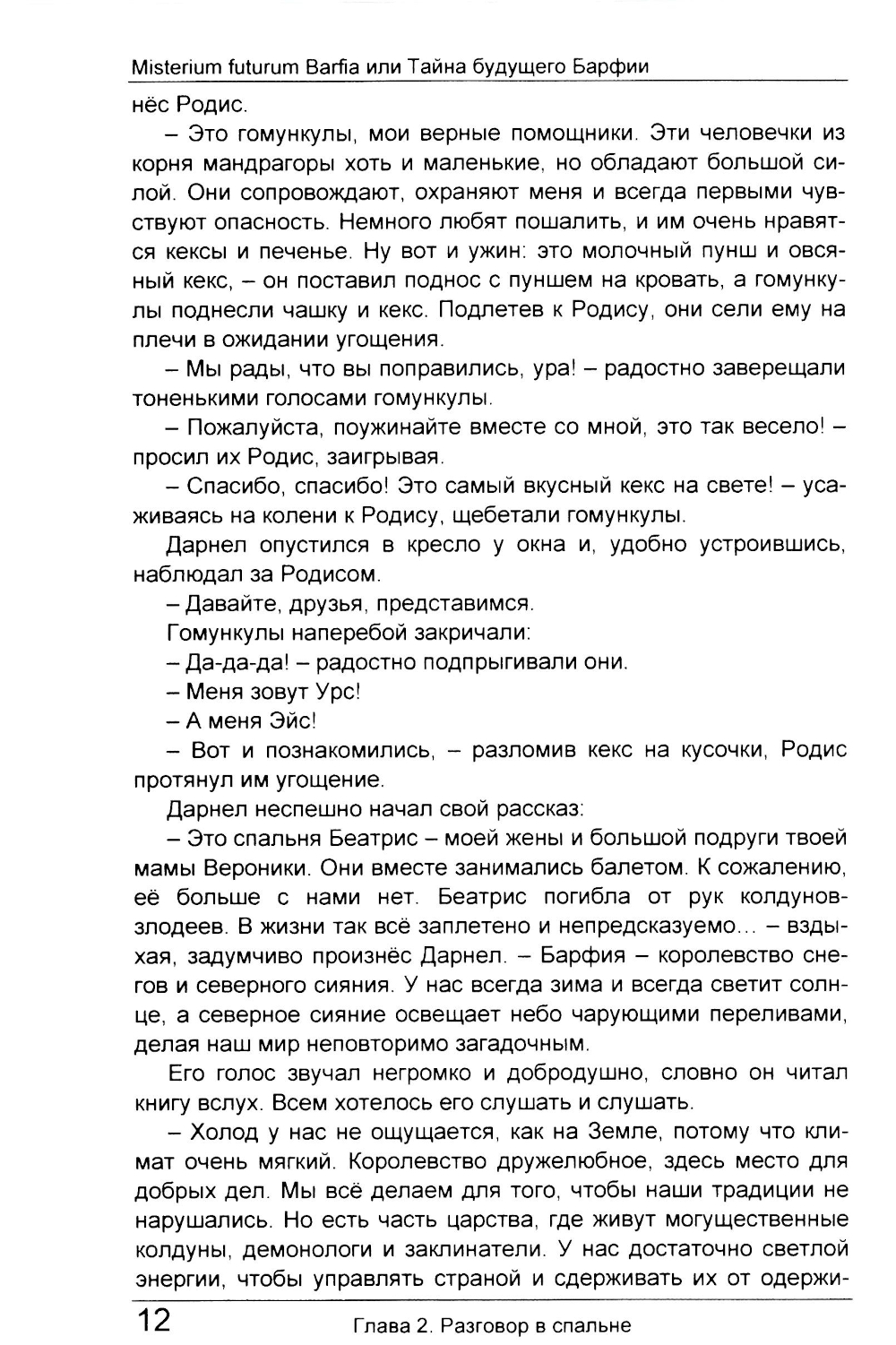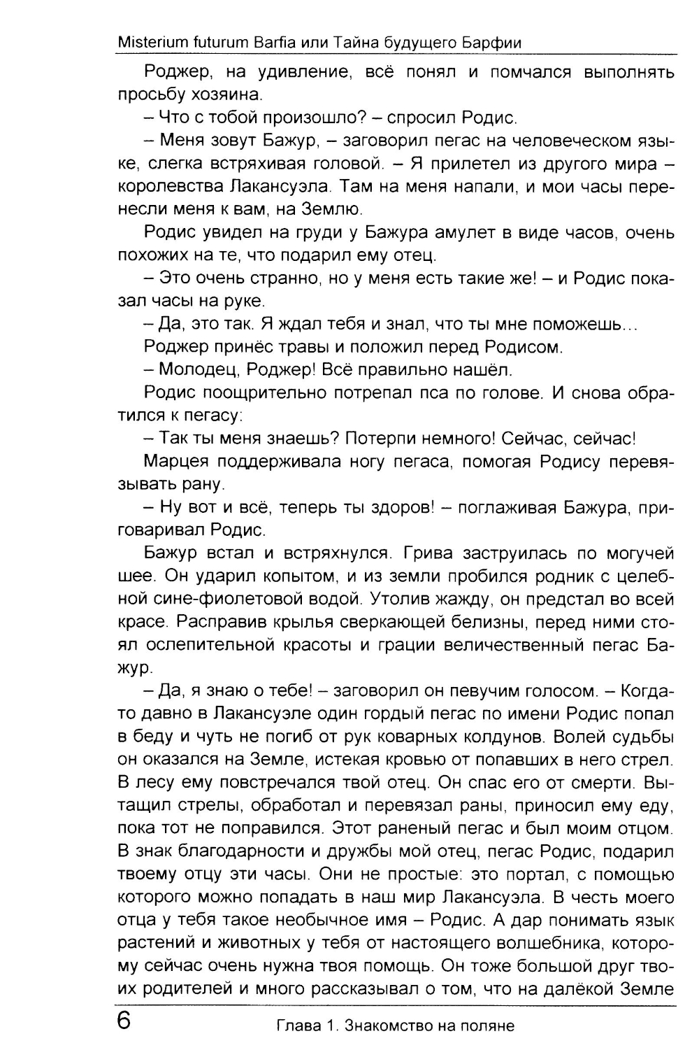 Дружба и смелость, любовь и свобода, магия и прогресс... Представьте себе два мира, затерявшиеся во временном пространстве: один - магическая заснеженная Барфия, где волшебники передвигаются на летающих болидах, часовщик умеет мастерить порталы между мирами и программировать роботов (вместе со своим учёным котом), а дворцовый енот владеет потаённым смыслом чародейства; другой - волшебное королевство Лакансуэла с мудрыми кентаврами, беззаботными феями и говорящими животными. В эти удивительные места, не без помощи раненого белокрылого пегаса, попадают Родис и Марцея. На Земле они не подозревали, что обладают даром от главного магистра ордена Барса, но в Барфии дремлющие силы пробудились. Оказалось, Родис - великий целитель, а Марцея - одарённая прорицательница. На пути их ждут чудесные и опасные существа: дружелюбные кентавры и жуткие болотные чудища, степенные белые маги и злые ведьмы на ледяных грифонах. Перед читателем оживает мир древних легенд и магических орденов, в котором герои меняются, учатся на своих ошибках, познают себя и становятся старше. Вместе им предстоит пройти непростой квест в деле спасения волшебных миров, и приключение обещает быть весьма увлекательным. Итак, отправляемся в полёт!| Издательство | Москва |
