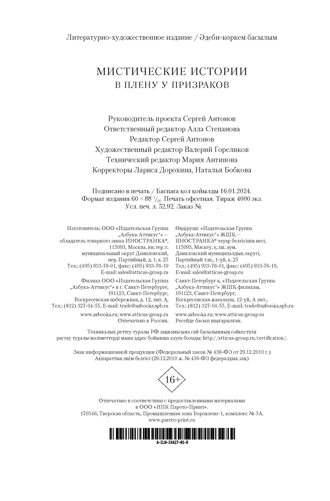 В антологию вошли мистические рассказы британских, американских и канадских писателей XIX-XX веков. В литературе Старого и Нового Света всегда присутствовал интерес к страшному и сверхъестественному. Первое место в богатом репертуаре подобных тем и сюжетов, безусловно, занимают истории о привидениях, которые и стали главными персонажами предлагаемой книги. Смутные тени в старинных покоях, тревожащие новых хозяев; незримые сущности, пронизывающие все стихии видимого мира; неприкаянные души жертв и убийц; духи, спасающие смертных и губящие самонадеянных хвастунов; призраки, переживающие трудные времена в эпоху философского скептицизма, расцвета науки и триумфа техники, враждующие между собой и даже вступающие в брак друг с другом; наконец, обычные люди, ведущие хитроумную «игру в привидений» со своими ближними, - все это и многое другое читатель найдет на страницах данного тома. Некоторые рассказы публикуются на русском языке впервые или печатаются в новых переводах.| Издательство | Иностранка |