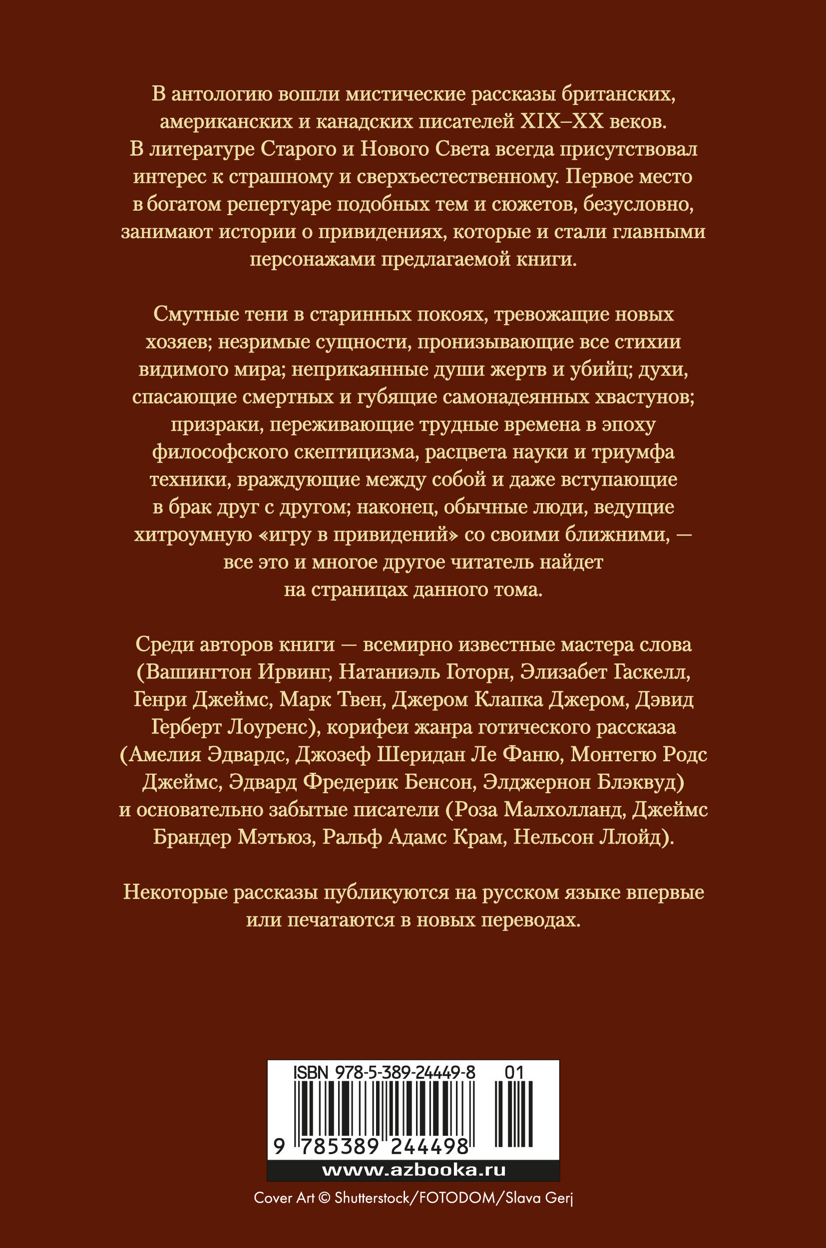 В антологию вошли мистические рассказы британских, американских и канадских писателей XIX-XX веков. В литературе Старого и Нового Света всегда присутствовал интерес к страшному и сверхъестественному. Первое место в богатом репертуаре подобных тем и сюжетов, безусловно, занимают истории о привидениях, которые и стали главными персонажами предлагаемой книги. Смутные тени в старинных покоях, тревожащие новых хозяев; незримые сущности, пронизывающие все стихии видимого мира; неприкаянные души жертв и убийц; духи, спасающие смертных и губящие самонадеянных хвастунов; призраки, переживающие трудные времена в эпоху философского скептицизма, расцвета науки и триумфа техники, враждующие между собой и даже вступающие в брак друг с другом; наконец, обычные люди, ведущие хитроумную "игру в привидений" со своими ближними, - все это и многое другое читатель найдет на страницах данного тома. Некоторые рассказы публикуются на русском языке впервые или печатаются в новых переводах.| Издательство | Азбука-Аттикус Издат.группа ООО |
