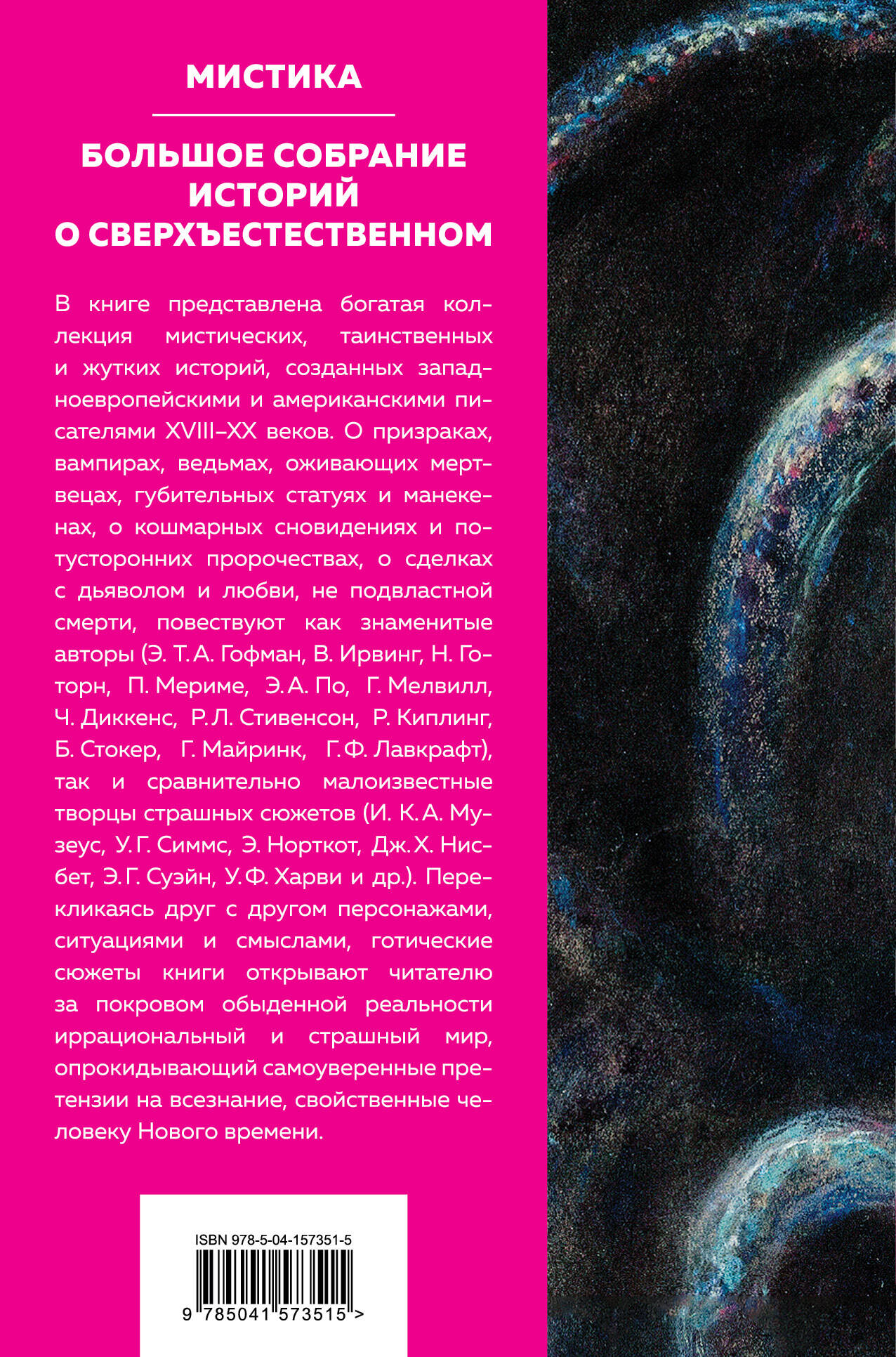 В книге представлена богатая коллекция мистических, таинственных и жутких историй, созданных западноевропейскими и американскими писателями XVIII-XX веков. О призраках, вампирах, ведьмах, оживающих мертвецах, губительных статуях и манекенах, о кошмарных сновидениях и потусторонних пророчествах, о сделках с дьяволом и любви, не подвластной смерти, повествуют как знаменитые авторы (Э. Т. А. Гофман, В. Ирвинг, Н. Готорн, П. Мериме, Э. А. По, Г. Мелвилл, Ч. Диккенс, Р. Л. Стивенсон, Р. Киплинг, Б. Стокер, Г. Майринк, Г. Ф. Лавкрафт), так и сравнительно малоизвестные творцы страшных сюжетов (И. К. А. Музеус, У. Г. Симмс, Э. Норткот, Дж. Х. Нисбет, Э. Г. Суэйн, У. Ф. Харви и др.). Перекликаясь друг с другом персонажами, ситуациями и смыслами, готические сюжеты книги открывают читателю за покровом обыденной реальности иррациональный и страшный мир, опрокидывающий самоуверенные претензии на всезнание, свойственные человеку Нового времени.| Издательство | ООО "Издательство "Эксмо" |