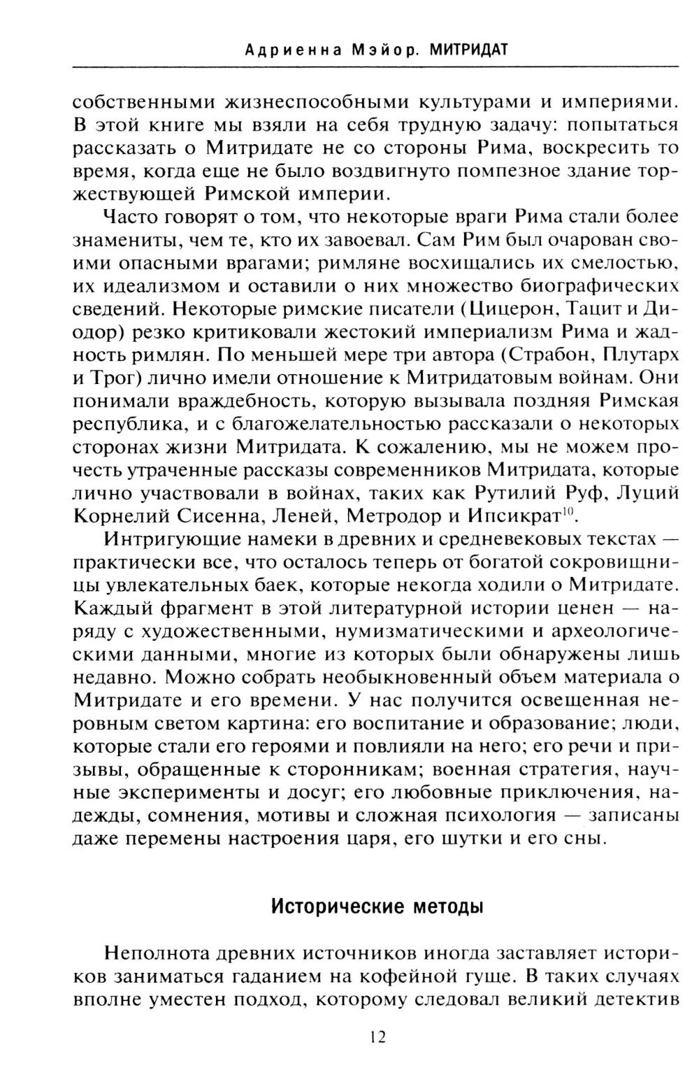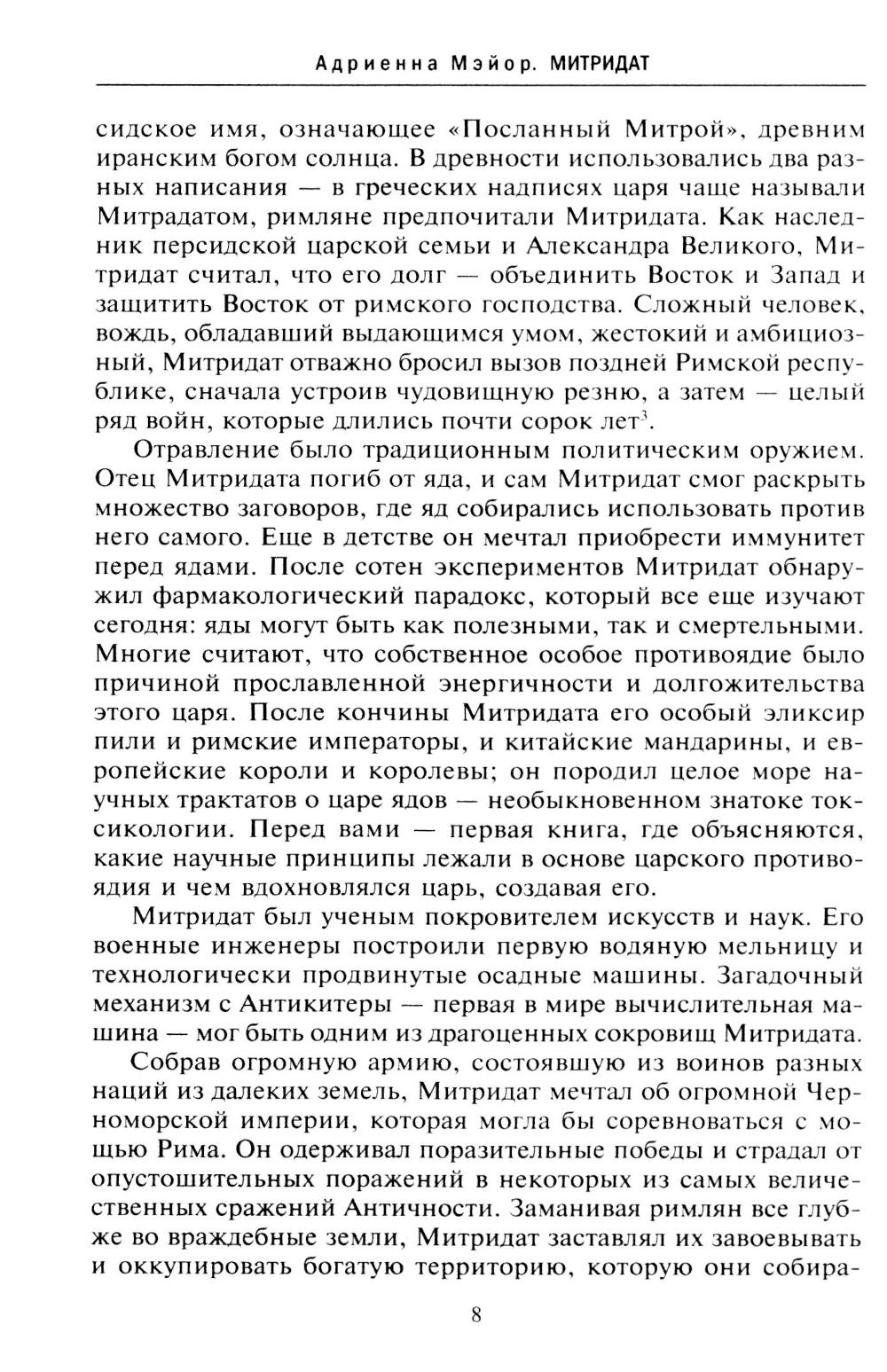 Адриенна Мэйор, преподаватель древней истории Стэндфордского университета, впервые преподносит читателю полную историю одного из самых безжалостных царей, мятежника-мечтателя, бросившего вызов власти Рима в I веке до н. э., Митридата. Макиавелли восхищался его военной гениальностью, европейские короли гонялись за его секретным противоядием... Одаренный высоким интеллектом и пылкими амбициями, став правителем, Митридат мечтал о Великой восточной империи, которая могла бы соперничать с Римом... Чарующий и пугающий властитель, проклятие Римской империи, агрессивный, очаровательный, хитрый, жестокий тиран; геноцид, террор, алхимия - все это Митридат.| Издательство | Центрполиграф |