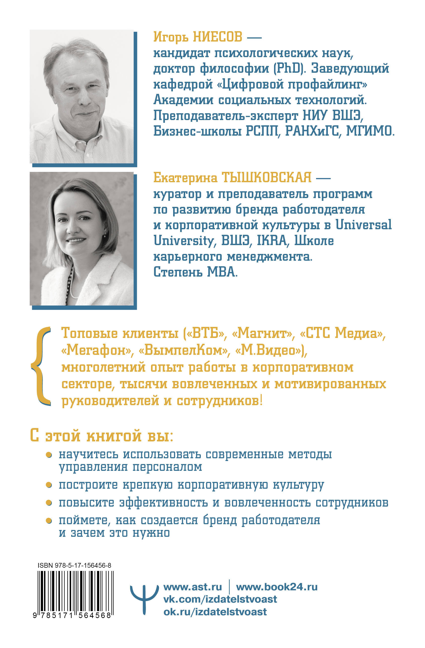 Почему все хотят войти в IT? Потому что там работают правила "мягкого менеджмента", а работник - не раб, а клиент! Продайте свою работу сотруднику, станьте сверхэффективным менеджером и приведите свою компанию к успеху! В этой книге ведущих исследователей в области человеческих ресурсов, чьими услугами пользуются топовые российские компании и команды - Игоря Ниесова и Екатерины Тышковской - вы найдете системные ответы на главные вопросы управления персоналом. • Как привлекать лучших и развивать способных? • Как ставить цели внутри компании/команды? • Как управлять сотрудниками на основе их сильных сторон? • Как мотивировать, вовлекать и создавать позитивный опыт? • Почему самореализация сотрудника влияет на успех компании? • Каковы системные законы взаимоотношения между работником и работодателем? • Как сохранять продуктивные отношения с работником максимально долго? Сама постановка этих вопросов подсказывает, что это принципы мягкого управления, мягкого менеджмента, за которым будущее и залог процветания любой организации! С этой книгой вы: • научитесь использовать современные методы управления персоналом; • построите крепкую корпоративную культуру; • повысите эффективность и вовлеченность сотрудников; • поймете, как создается бренд работодателя и зачем это нужно.