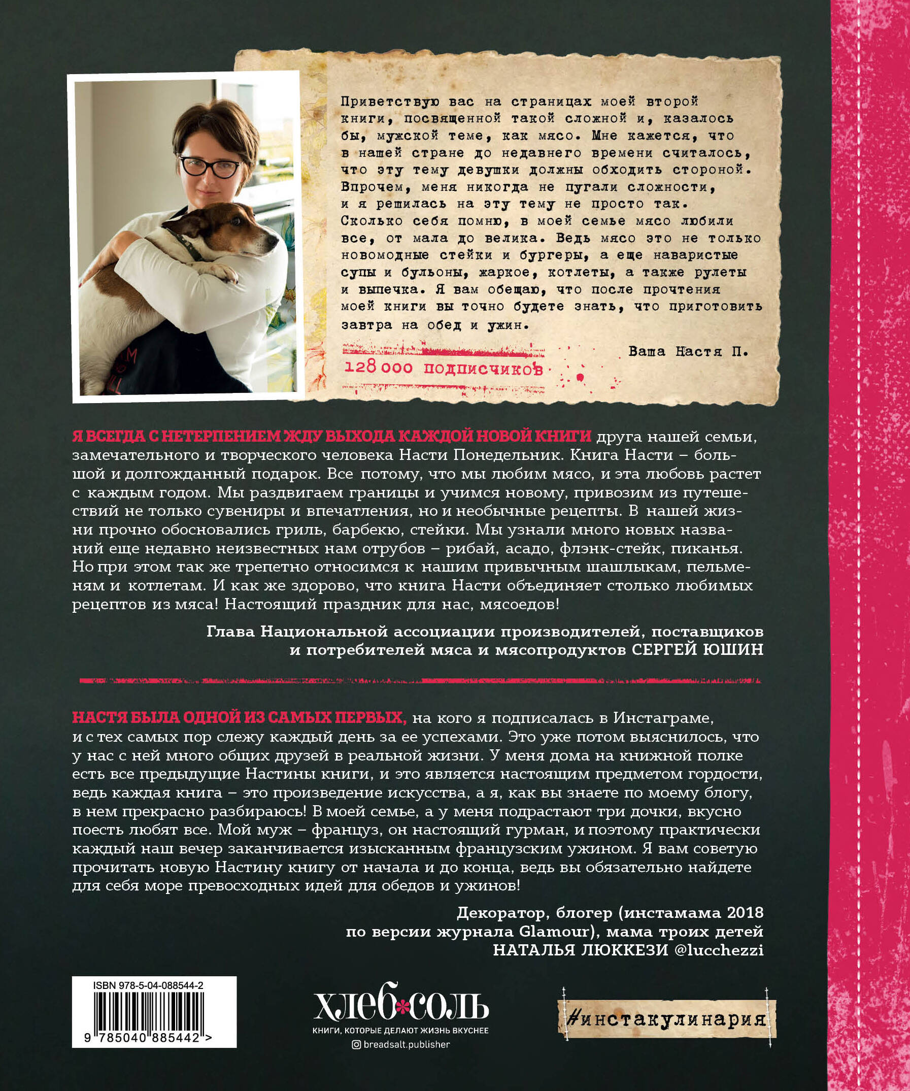 Мясо заслужило репутацию чисто мужского продукта. Судите сами, когда говорят "мясо", многие подразумевают "стейк", когда говорят "стейк", представляют себе брутального повара и не менее брутальный гриль. Но не стейком единым, а еще котлетками, наваристой солянкой, бесподобными тефтельками в сметанном соусе, домашней лазаньей и пышными беляшами можно продолжить список блюд из мяса. Настя Понедельник взяла ситуацию в свои руки и в новой книге "Мясо есть!" рассказывает, как приготовить самые вкусные наггетсы, идеальную пастрами и ароматный венгерский гуляш. Рецепты она сопровождает авторскими фотографиями, заметочками из жизни, а также tips&tricks - кулинарными приемами и хитростями. Проблема этой книги в одном: невозможно успокоиться, пока не приготовишь все блюда из нее. Так что запасайтесь терпением - и бегом на рынок за свежими продуктами.| Издательство | ООО "Издательство "Эксмо" |