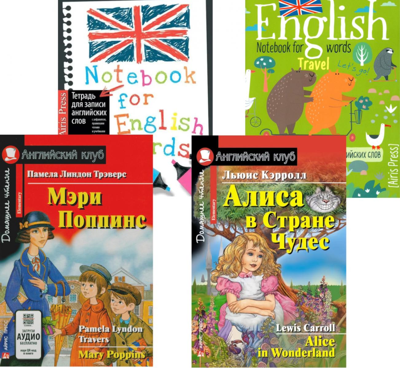 Мэри Поппинс. Алиса в Стране Чудес + Тетради для записи английских слов (комплект из 2-х книг + 2 тетради). Книги на англ. Языке