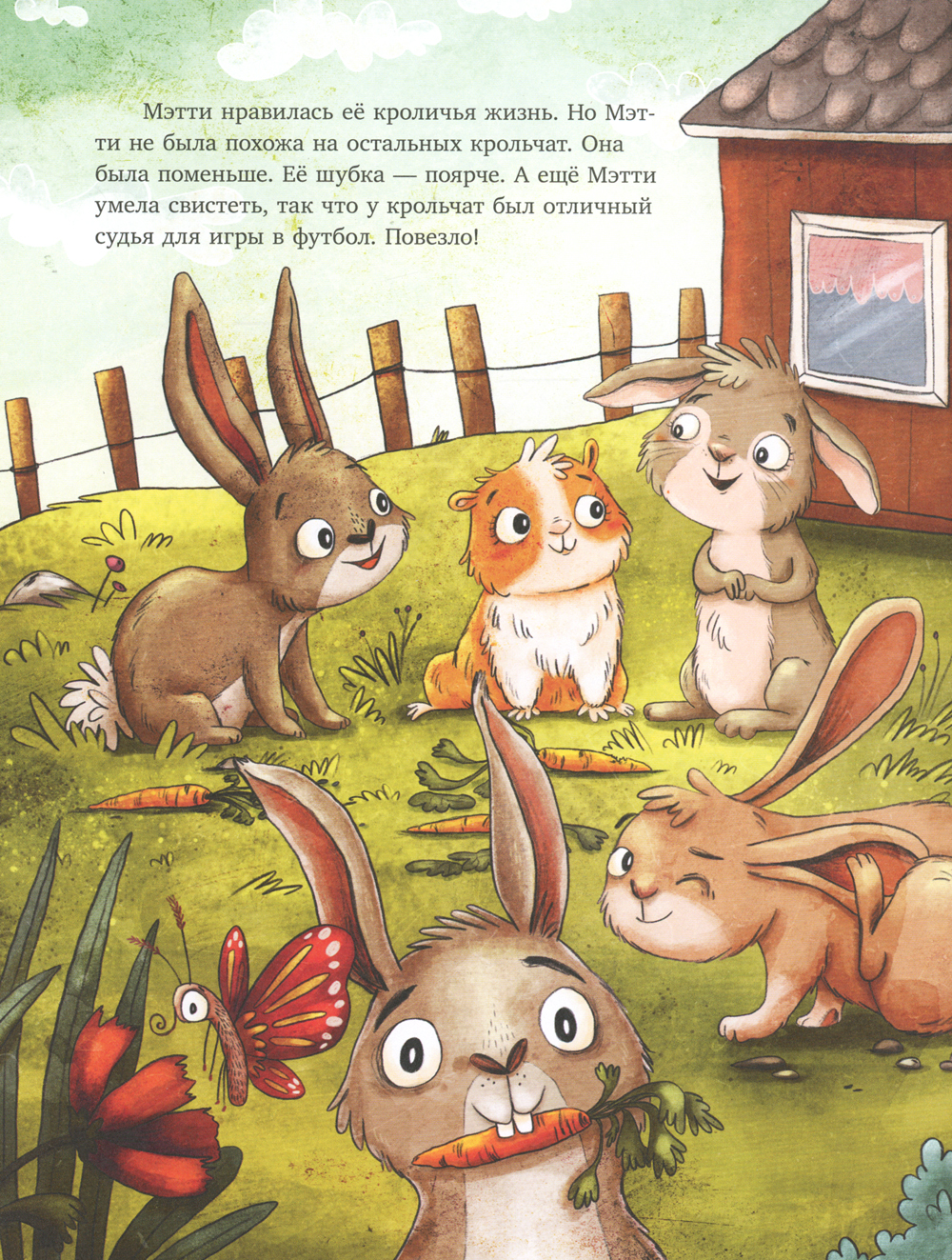 Мэтти - маленькая морская свинка. Больше всего на свете она любит жить на ферме, собирать маргаритки и танцевать на лугу. Мэтти думает, что она - самый настоящий кролик, как и ее друзья. Но однажды на пороге появляется неожиданный гость... Чудесная и добрая история о настоящей дружбе, умении прощать и принимать себя таким, какой ты есть на самом деле.