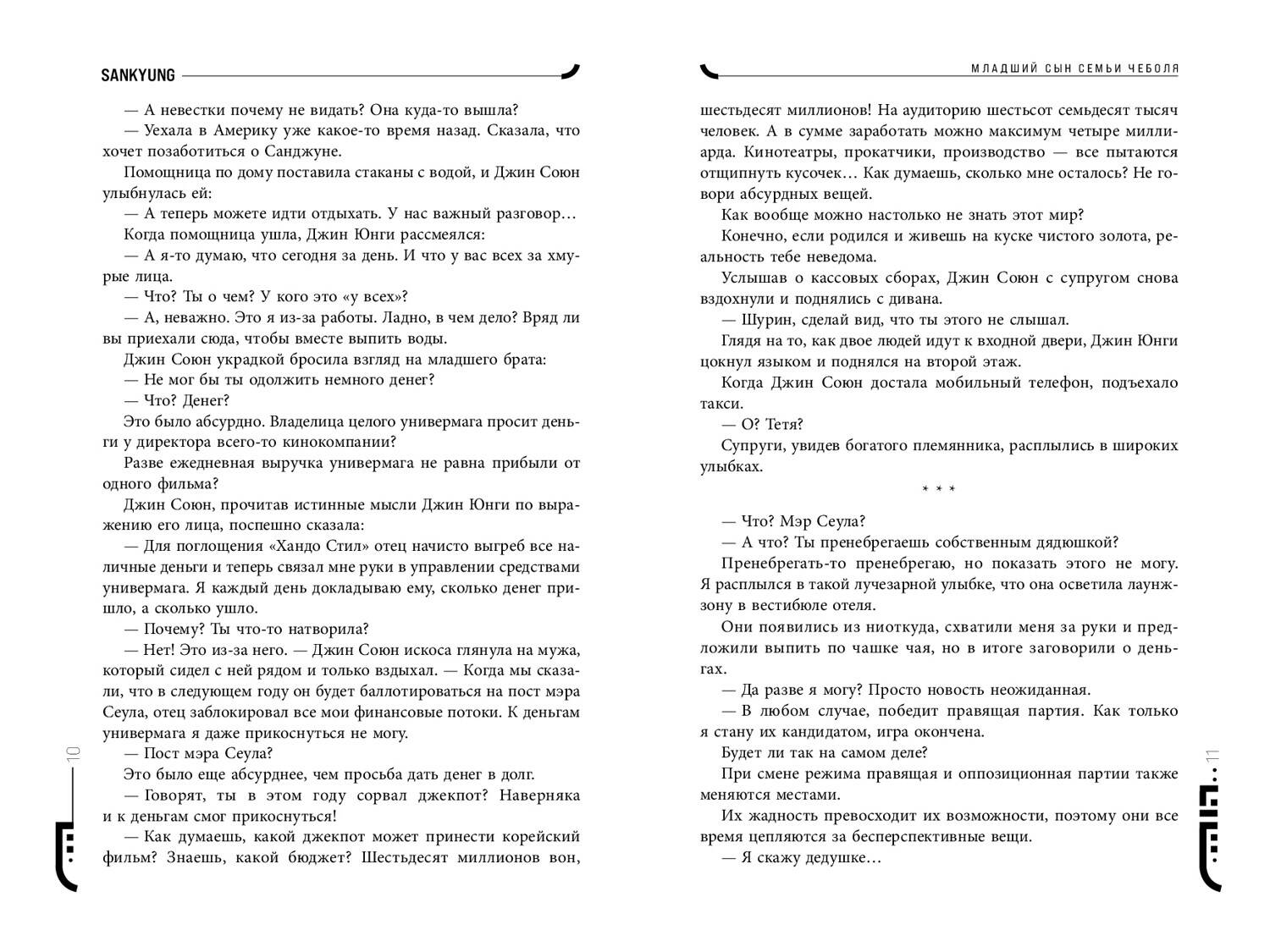 Второй том популярной новеллы «Младший сын семьи чеболя», которая легла в основу одноименной корейской дорамы, имевшей невероятный успех. Доджун развивает кинокомпанию своего отца и планирует перехитрить безжалостного, сурового и жадного до денег основателя Джин Янчхоля. Никто не ожидал, что финансовый кризис обрушится на Корею, но лишь Доджун знает, как его избежать. Младший чеболь использует знания из прошлой жизни, помогая спасти «Сунъян Групп» и предлагает заполучить доллары, чтобы подготовиться к валютной катастрофе. Благодаря этому внук заслужил доверие дедушки, основателя Джин Янчхоля, и теперь готовится нанести новый удар, в надежде стать преемником председателя. Доджун намерен поглотить ведущую строительную компанию «Тэа Констракшен» и в дальнейшем дать ей имя «Сунъян», чтобы заработать миллиарды. Тем временем чеболь сближается с одногруппницей Со Минён, которая намерена стать прокурором и бороться с коррупцией, однако она еще не догадывается, на кого впоследствии ей придется направить свои стрелы. Чеболи - крупные южнокорейские корпорации, находящиеся в собственности одной семьи. В новелле вы найдете множество отсылок к реальным личностям, событиям, компаниям, кинопроектам и музыкальным группам. Шикарное оформление с софттач суперобложкой российской художницы.| Издательство | ООО "Издательство "Эксмо" |