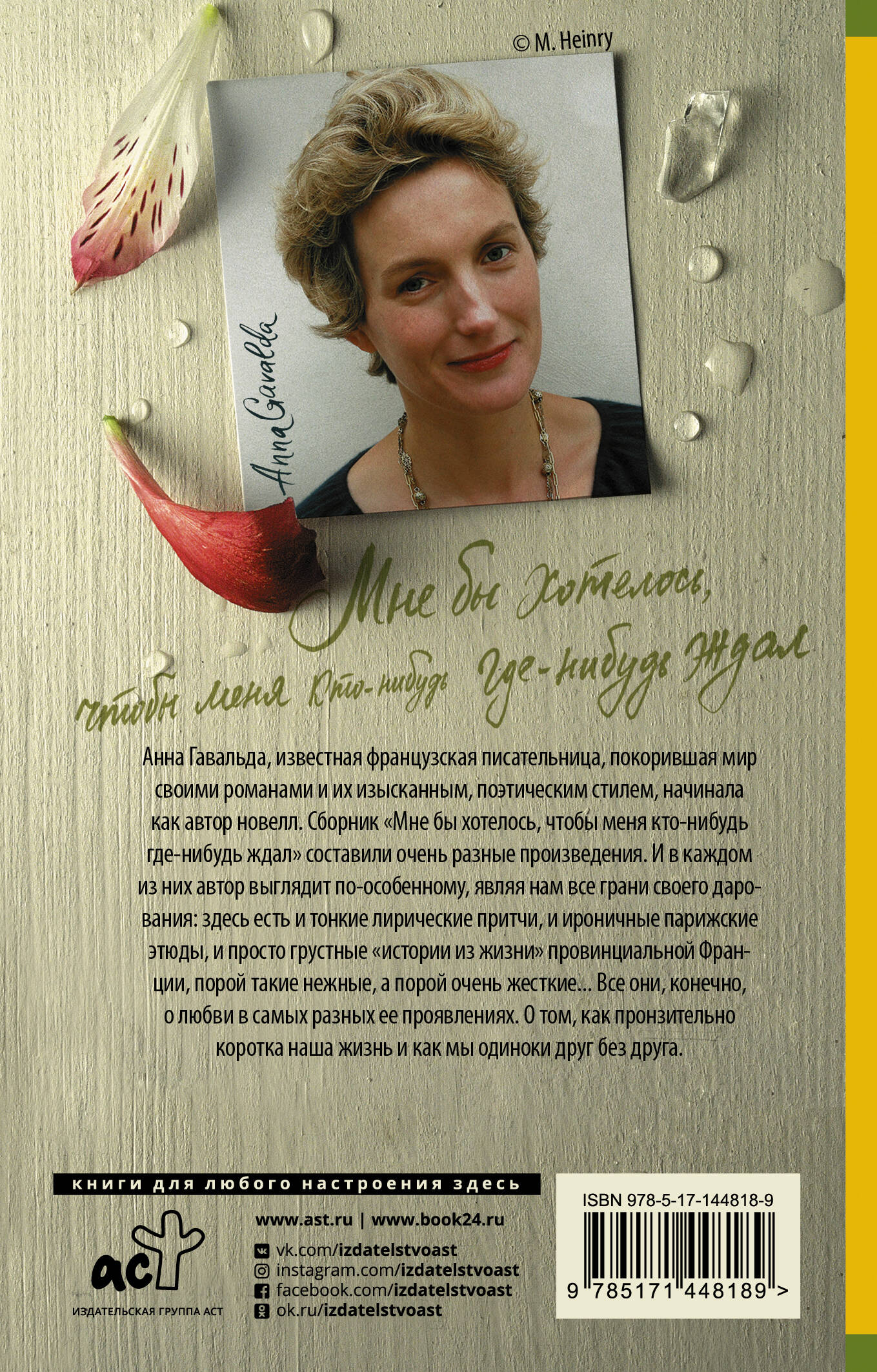 Анна Гавальда, известная французская писательница, покорившая мир своими романами и их изысканным, поэтическим стилем, начинала как автор новелл. Сборник "Мне бы хотелось, чтобы меня кто-нибудь где-нибудь ждал" составили очень разные произведения. И в каждом из них автор выглядит по-особенному, являя нам все грани своего дарования: здесь есть и тонкие лирические притчи, и ироничные парижские этюды, и просто грустные "истории из жизни" провинциальной Франции, порой такие нежные, а порой очень жесткие... Все они, конечно, о любви в самых разных ее проявлениях. О том, как пронзительно коротка наша жизнь и как мы одиноки друг без друга.| Издательство | ИЗДАТЕЛЬСТВО "АСТ" |