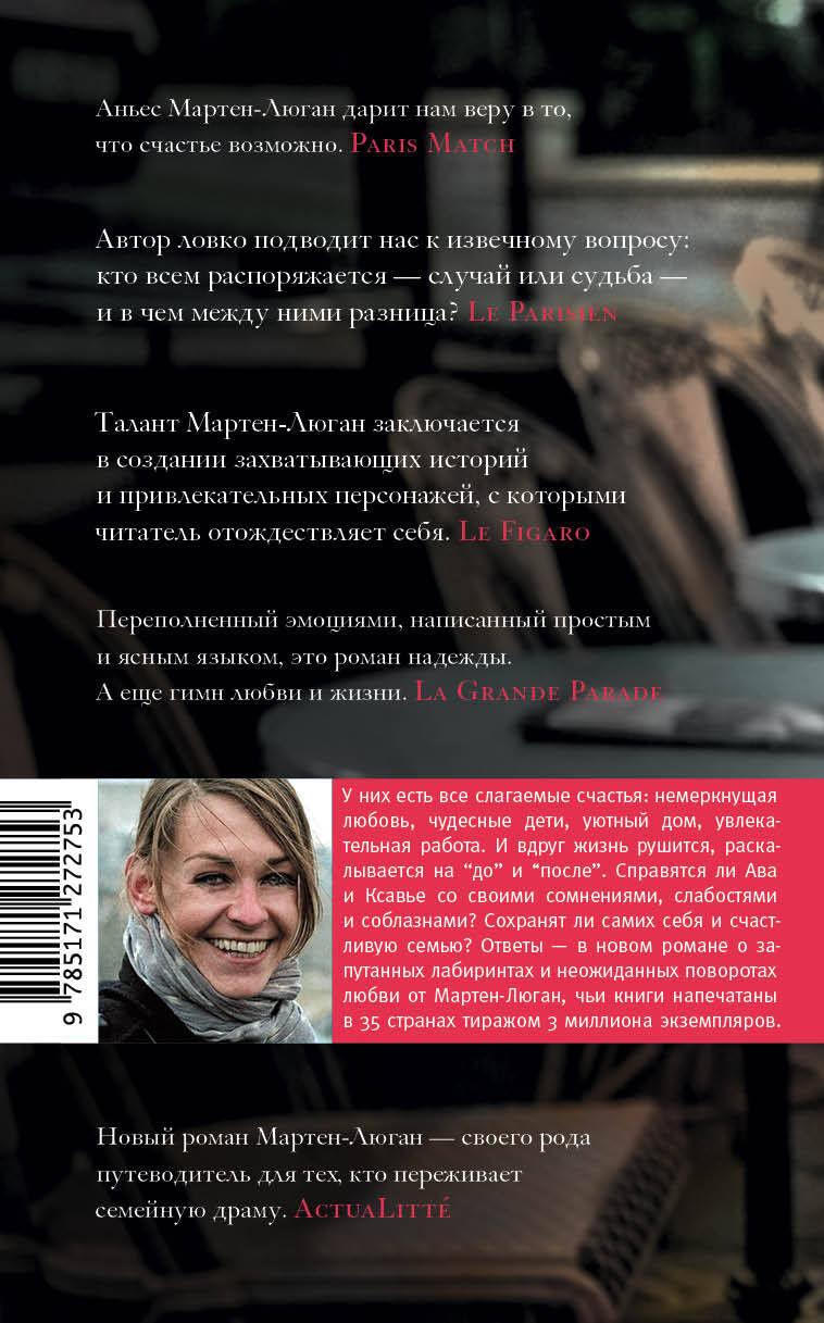Какой бы прекрасной сказкой ни была жизнь, порой достаточно одного поворота судьбы, чтобы превратить её в запутанный кошмарный сон. Новый роман от автора бестселлеров "Счастливые люди читают книжки и пьют кофе" и "У тебя все получится, дорогая моя". "Мне надо кое в чем тебе признаться…"- психологическая семейная драма, показывающая, как зыбок и уязвим может быть мир, построенный вокруг кого-то, пусть это будет даже самый любимый, желанный и лучший человек на свете. В один прекрасный вечер Ава, главная героиня романа, открывает в своей галерее выставку многообещающего современного художника. И в этот момент происходит трагедия, которая навсегда разделит её жизнь на "до" и "после". "До" - прекрасный дом с любящим мужем и двумя изумительными детьми. "После" - огромная трещина, которую необходимо заделать, и зияющая пропасть, в которую надо не упасть. В новом романе Аньес Мартен-Люган, как и в предыдущих её бестселлерах, одну из главных ролей играет судьба, которая, с одной стороны, устраивает на пути героев все новые и новые трудности, а с другой - открывает перед ними все новые и новые| Издательство | ИЗДАТЕЛЬСТВО "АСТ" |