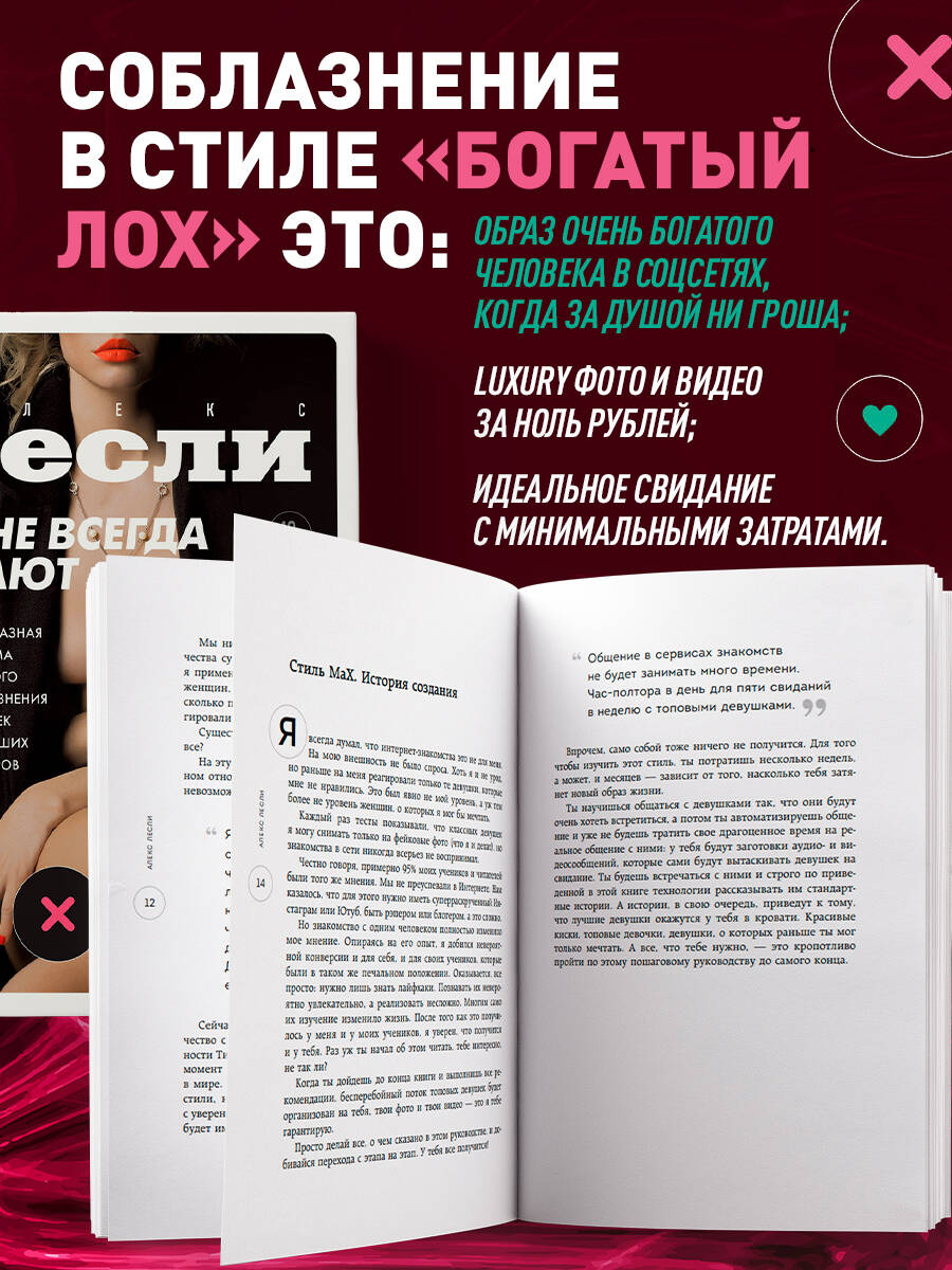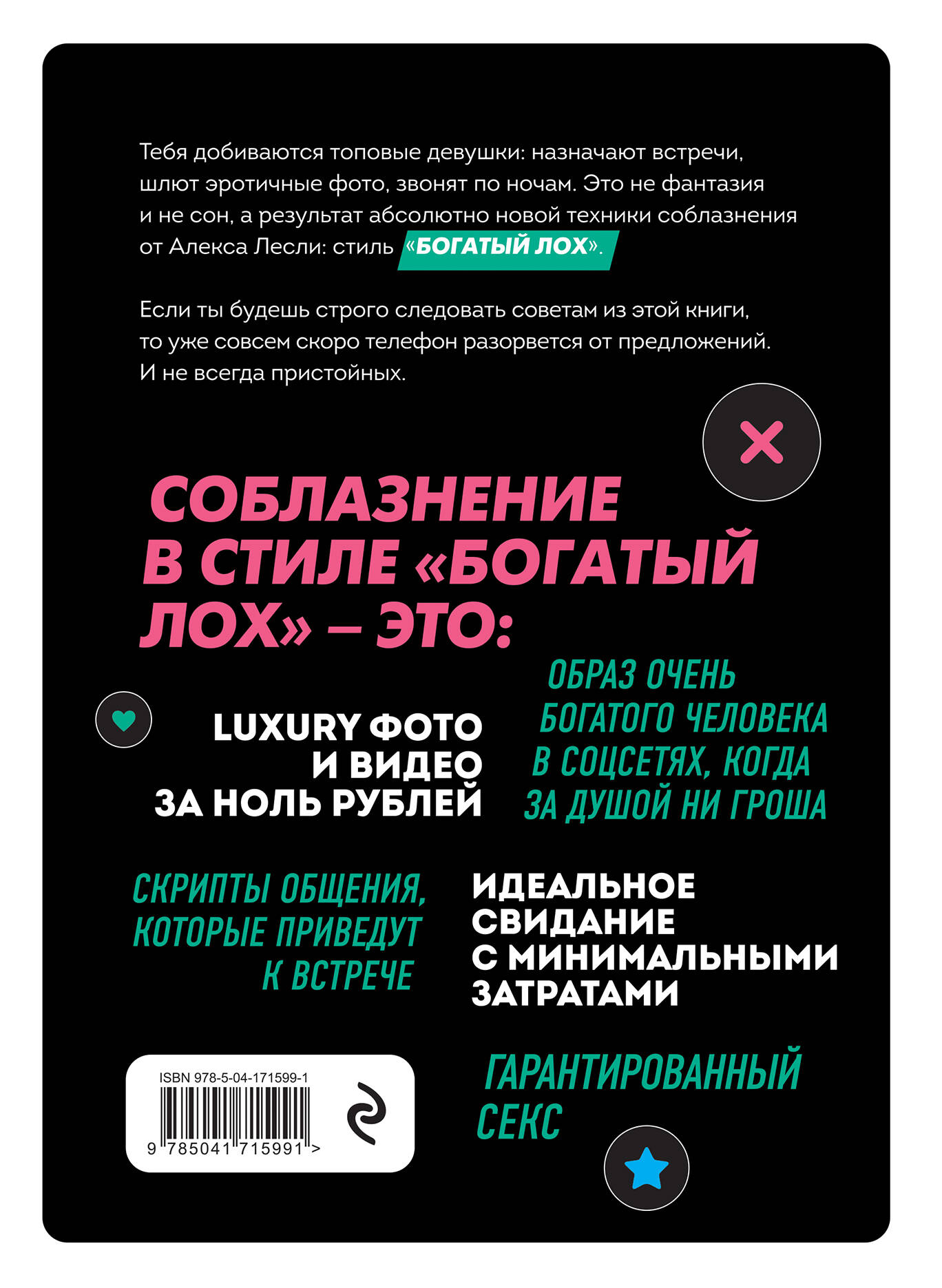 Тебя добиваются топовые девушки: назначают встречи, шлют эротичные фото, звонят по ночам. Это не фантазия и не сон, а результат абсолютно новой техники соблазнения от Алекса Лесли: стиль «Богатый лох». Если ты будешь строго следовать советам из этой книги, то уже совсем скоро телефон разорвется от предложений. И не всегда пристойных. Соблазнение в стиле «Богатый лох» это: • Образ очень богатого человека в соцсетях, когда за душой ни гроша. • Luxury фото и видео за ноль рублей. • Скрипты общения, которые приведут к встрече. • Идеальное свидание с минимальными затратами. • Гарантированный секс.| Издательство | ООО "Издательство "Эксмо" |