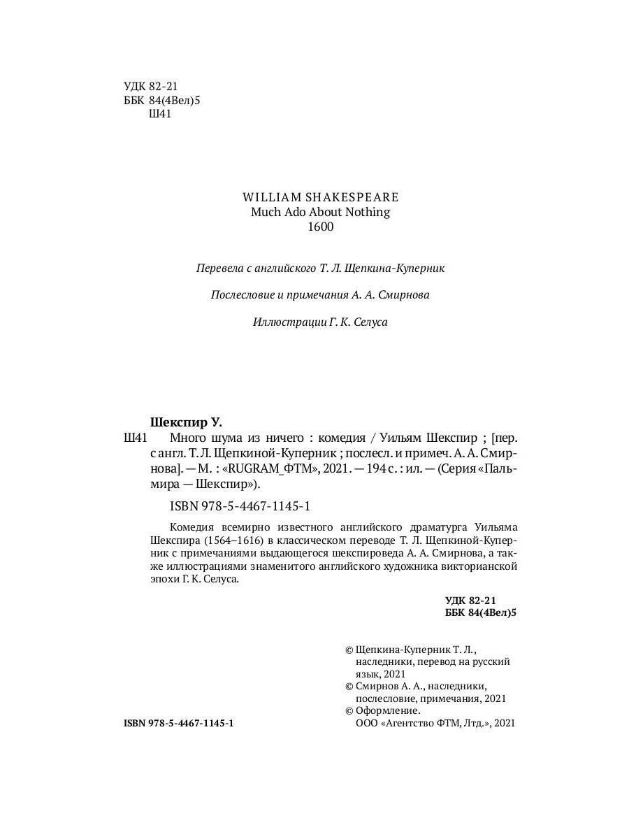 Комедия всемирно известного английского драматурга Уильяма Шекспира (1564-1616) в классическом переводе Т.Л. Щепкиной-Куперник с примечаниями выдающегося шекспироведа А.А. Смирнова, а также иллюстрациями знаменитого английского художника викторианской эпохи Г.К. Селуса.
