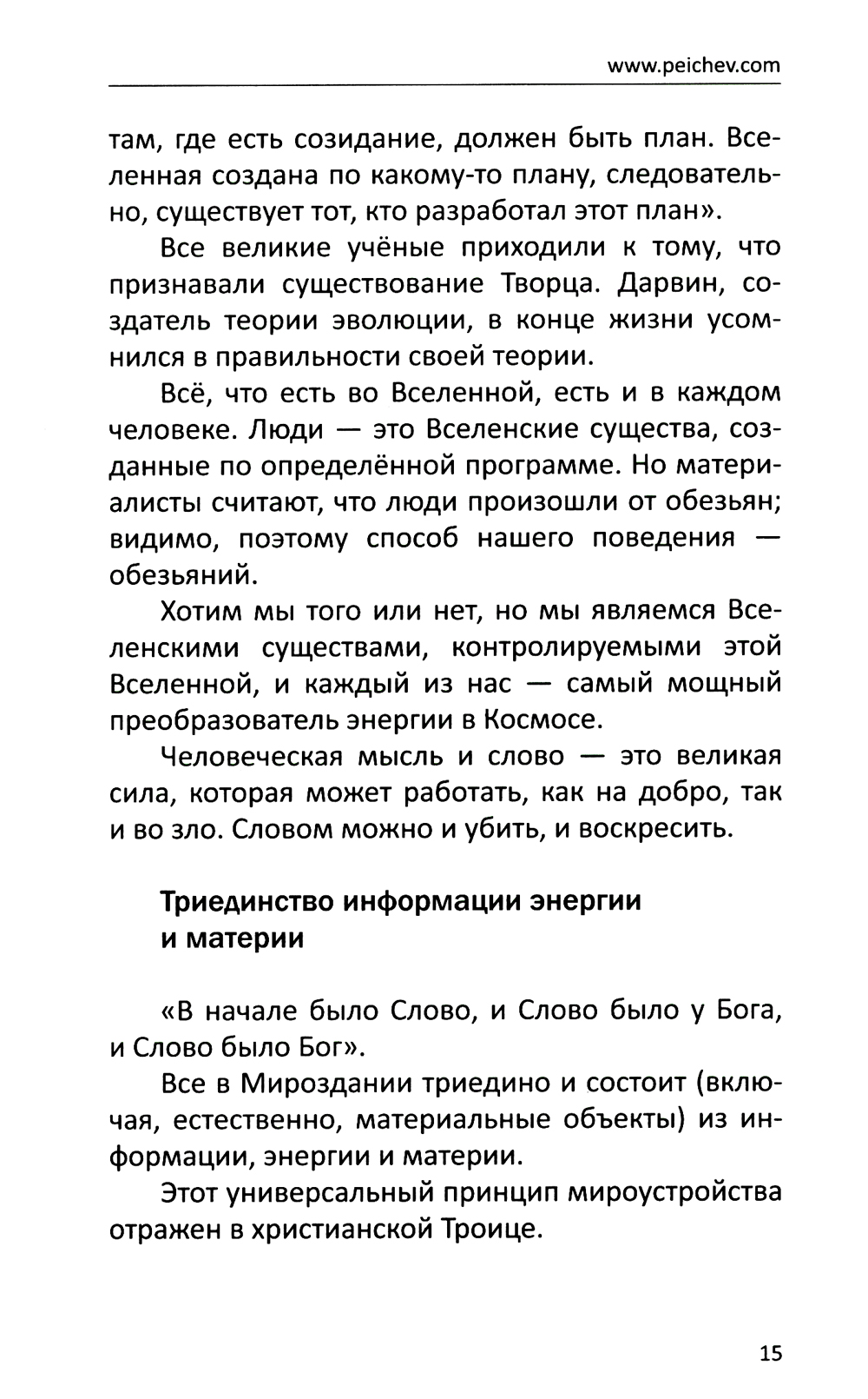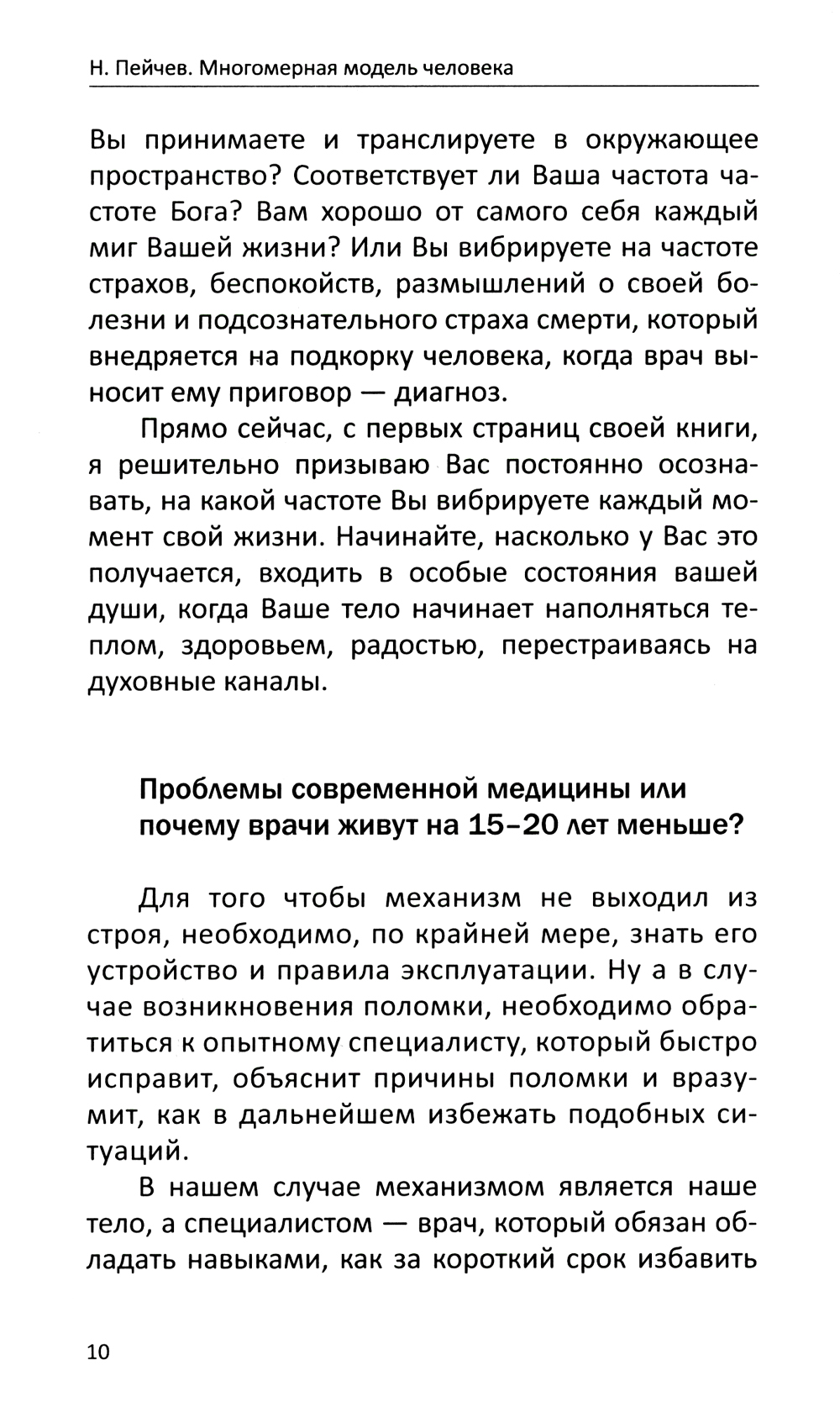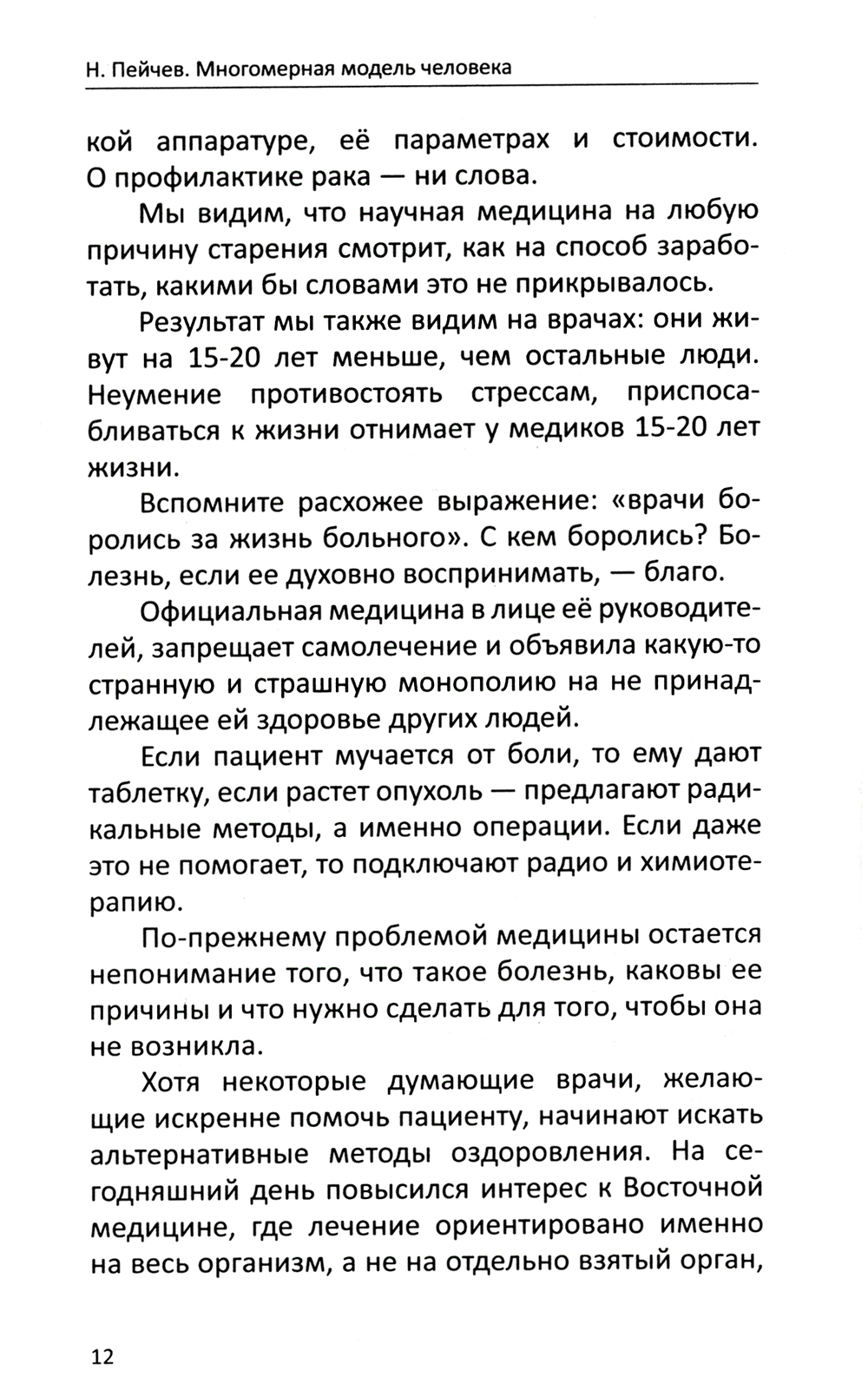 Эта книга рассказывает о причинах различных заболеваний человека с точки зрения его жизненных установок, модели поведения и образа жизни. Николай Пейчев за многие годы практической диагностики заболеваний выработал свою систему корректировки поведения и мышления пациента, которая позволяет ему не просто излечиться, но усвоить урок, который несет в себе любая болезнь.| Издательство | Изд.Свет |