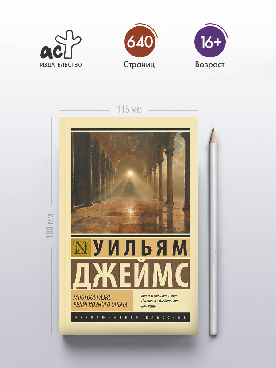 Уильям Джеймс - отец современной психологии, ведущий представитель прагматизма и функционализма, основатель лаборатории прикладной психологии в Гарварде. «Многообразие религиозного опыта» - главная книга Уильяма Джеймса и один из основных трудов по исследованию религий в принципе. Состоит из двадцати Гиффордских лекций по естественной теологии, прочитанных авторов в Эдинбургском университете в 1901 году. В удобном карманном формате в любимом оформлении легендарной серии «Эксклюзивная классика».| Издательство | Издательство "АСТ" |