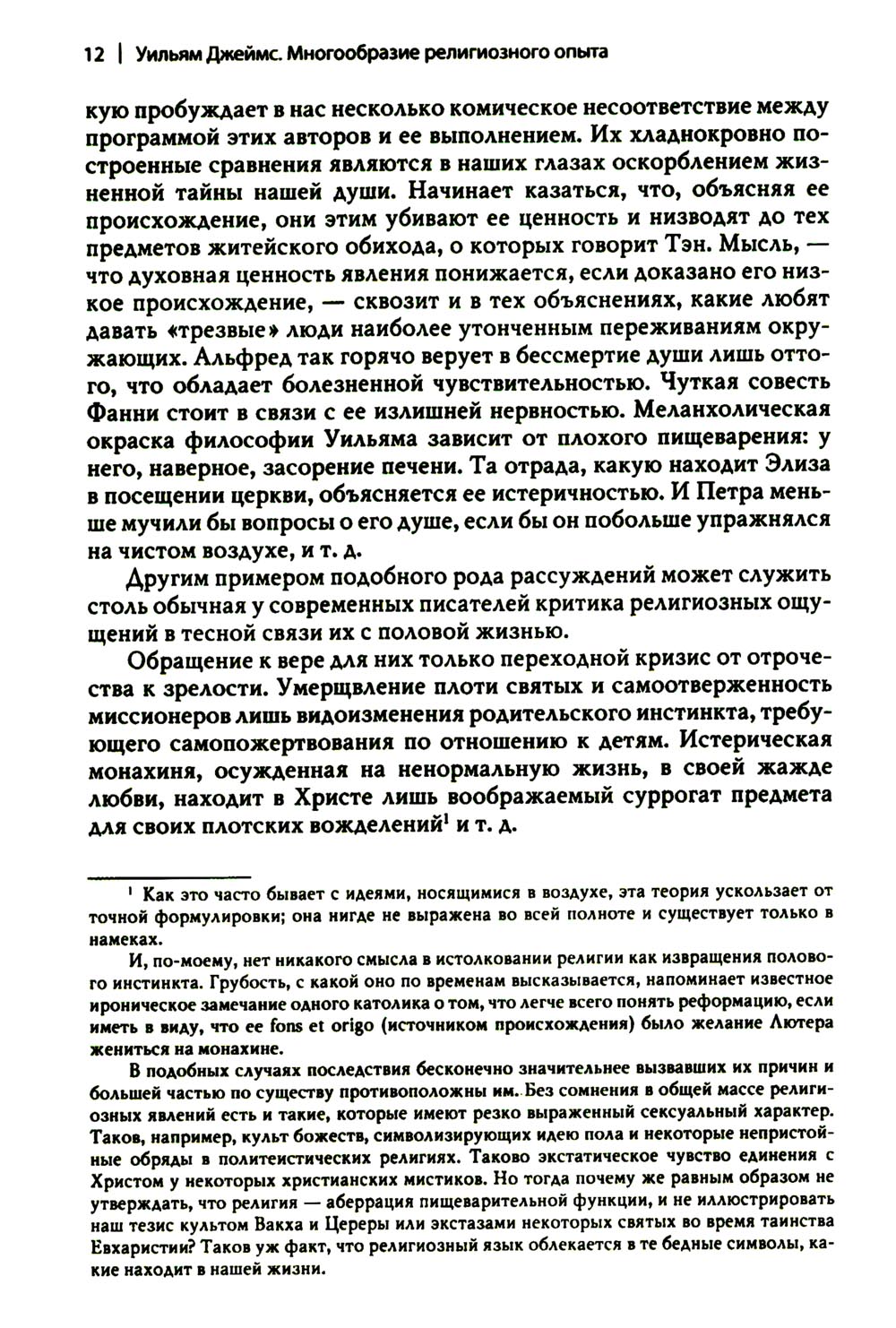 В настоящее издание входит важнейший труд американского философа и психолога Уильяма Джеймса (1842-1910) «Многообразие религиозного опыта», давно ставший классикой. Религия исследуется Джеймсом не как социальный институт, но прежде всего как личное переживание. Он определяет религию как «совокупность чувств, действий и опыта отдельной личности, поскольку их содержанием устанавливается ее отношение к тому, что она почитает Божеством», соединяя с этим мысль о «значительном состоянии души» религиозного человека. Джеймс подверг тщательному исследованию многочисленные документальные источники, что позволило ему глубже рассмотреть ценность святости, особенности мистицизма (такие как неизреченность, интуитивный характер, кратковременность и бездеятельность воли), исследовать феномен религиозного обращения, которому, по его мнению, предшествует длительная подготовка в подсознательных областях психической жизни, представить собственную классификацию религиозных личностей (единожды рожденные и дважды рожденные), до сих пор не утратившую своей актуальности. Все это делает труд Джеймса полезным для религиоведов, философов, психологов, культурологов, а также всех, кто интересуется проблемами религии.| Издательство | Академический проект |