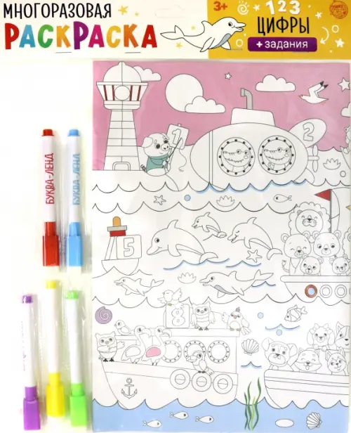 Многоразовая раскраска с заданиями. Рисуй. Стирай. В комплекте 5 маркеров. Размер раскраски: 30х42 см. Для детей старше 3-х лет.
