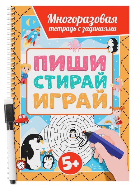 МНОГОРАЗОВАЯ ТЕТРАДЬ с заданиями с маркером. ПИШИ-СТИРАЙ-ИГРАЙ 5+