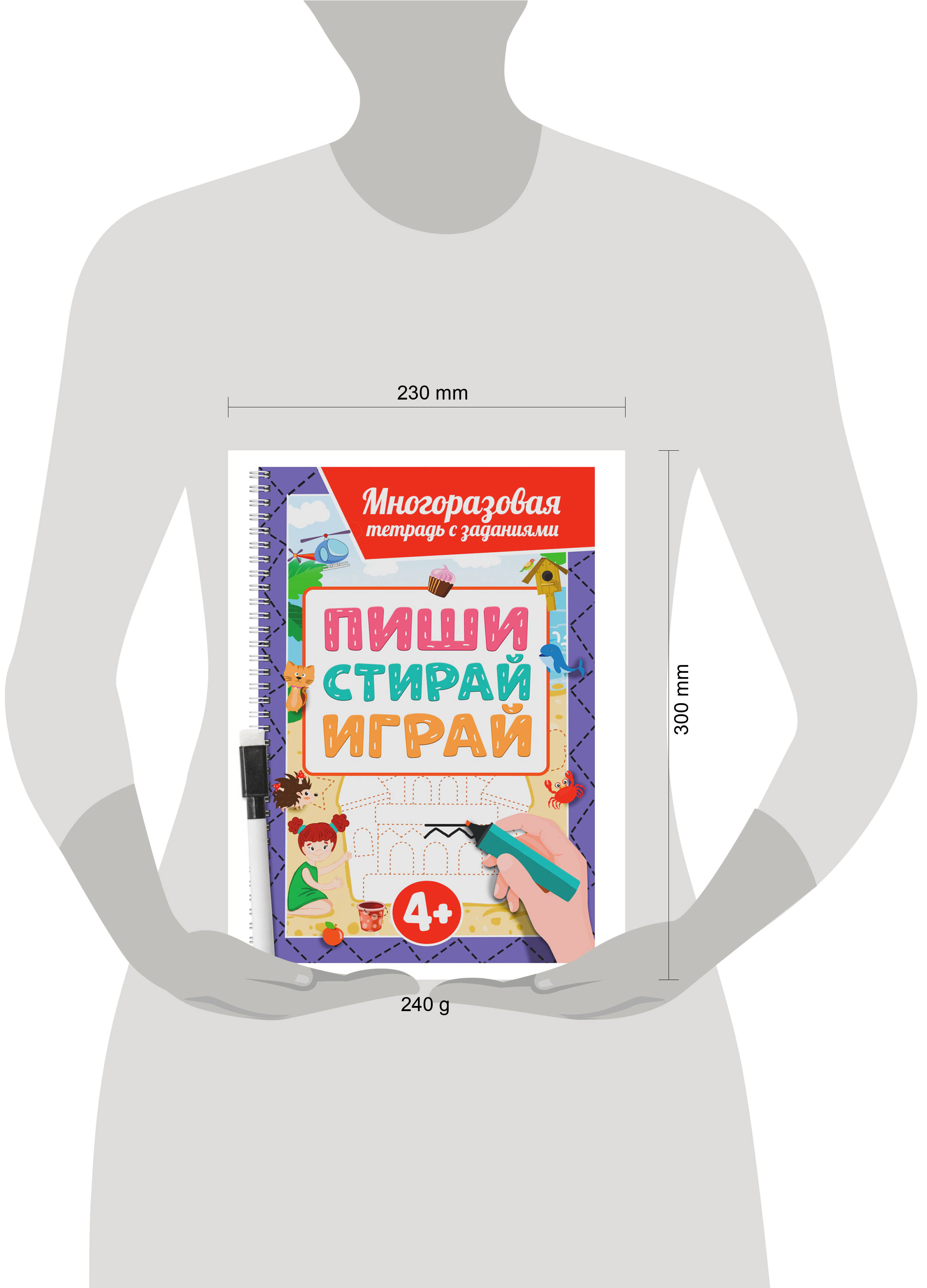 МНОГОРАЗОВАЯ ТЕТРАДЬ с заданиями с маркером. ПИШИСТИРАЙИГРАЙ 4+