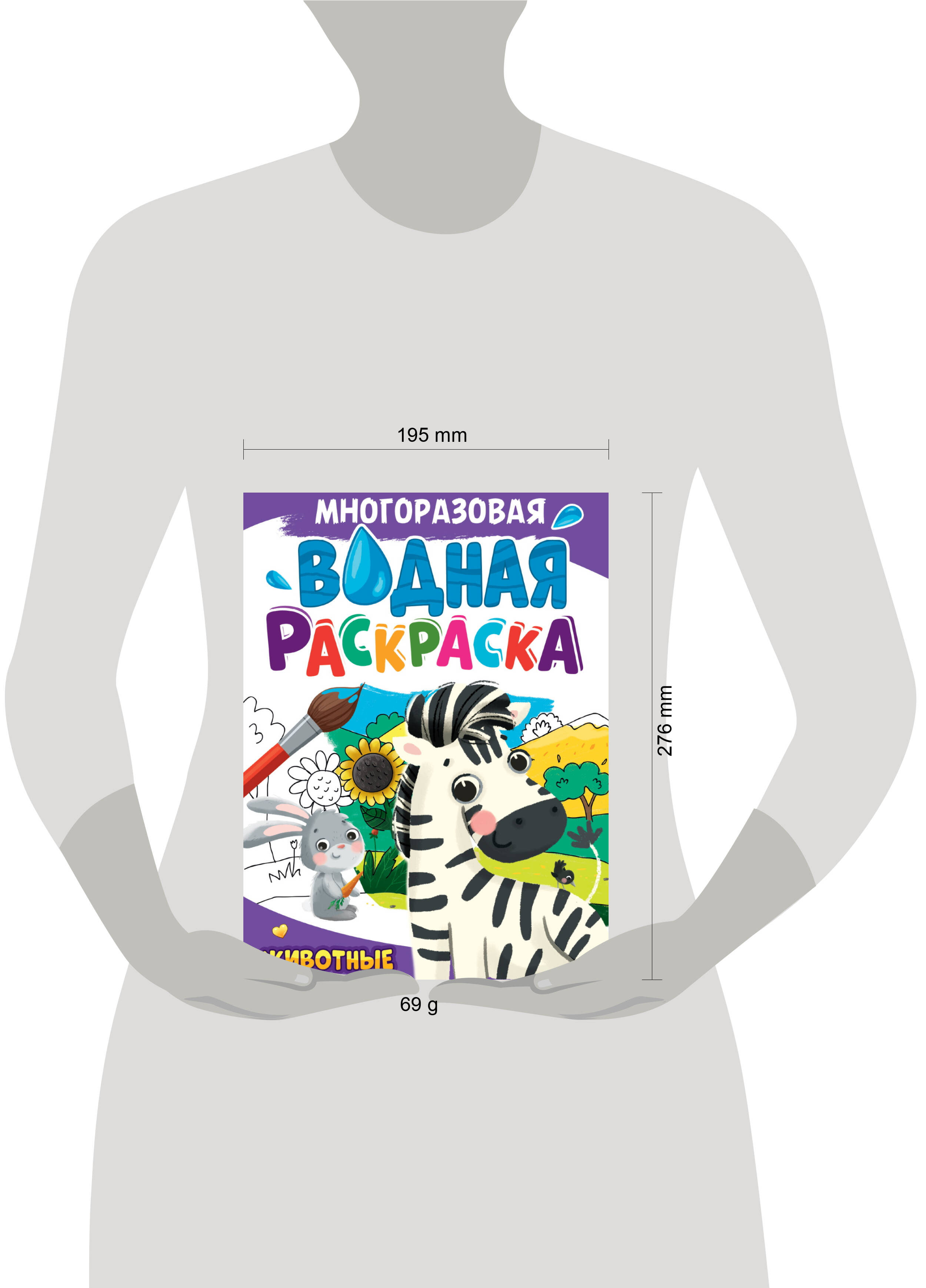 МНОГОРАЗОВАЯ ВОДНАЯ РАСКРАСКА А4. ЖИВОТНЫЕ