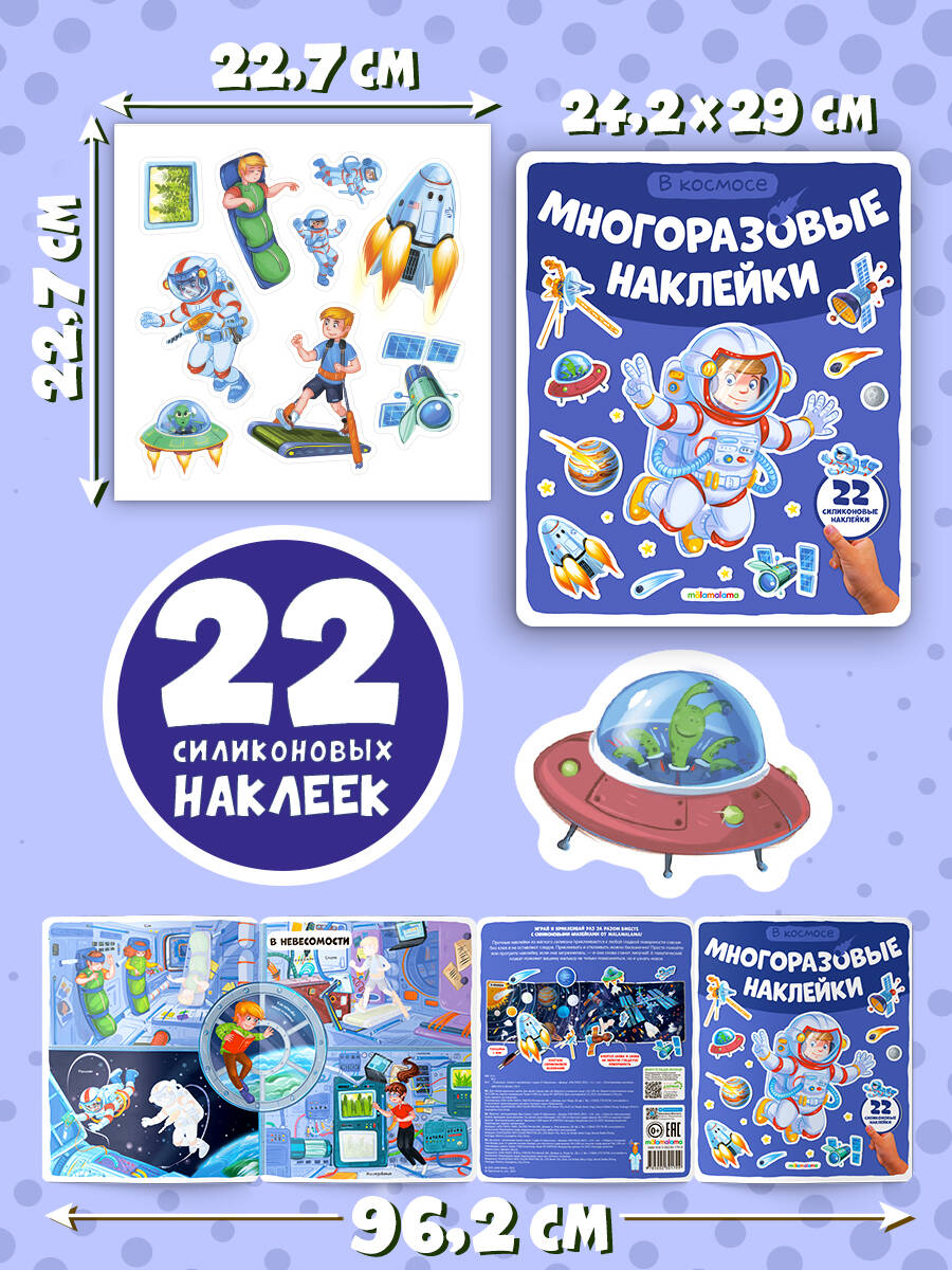 "Плакат с многоразовыми силиконовыми наклейками "В космосе" от Malamalama - это весёлые игры и увлекательное изучение нового! Наклейки из мягкого и прочного силикона легко приклеиваются к любой гладкой поверхности без использования клея и отклеиваются, не оставляя следов, поэтому ваш малыш сможет играть с ними бесконечно! Если наклейки загрязнились, не беспокойтесь - их можно легко помыть водой или протереть, и они будут как новые. Красочный картонный плакат поможет ребенку не только весело провести время, но и развить воображение, расширить кругозор и пополнить словарный запас. Играйте и экспериментируйте с многоразовыми силиконовыми наклейками от Malamalama!"| Издательство | АЛЬ ПАКО ООО |