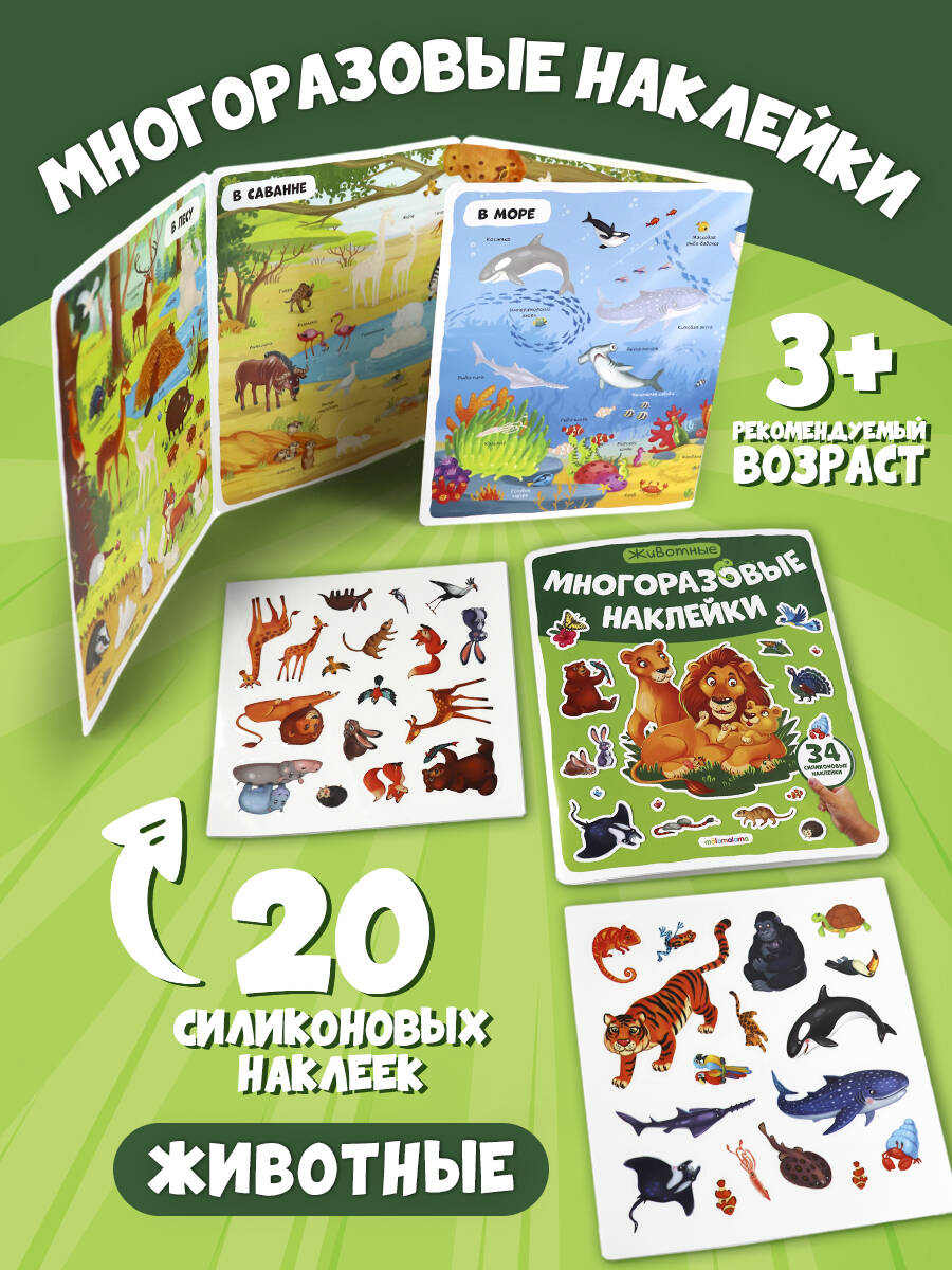 Аннотация: Многоразовые наклейки. Животные