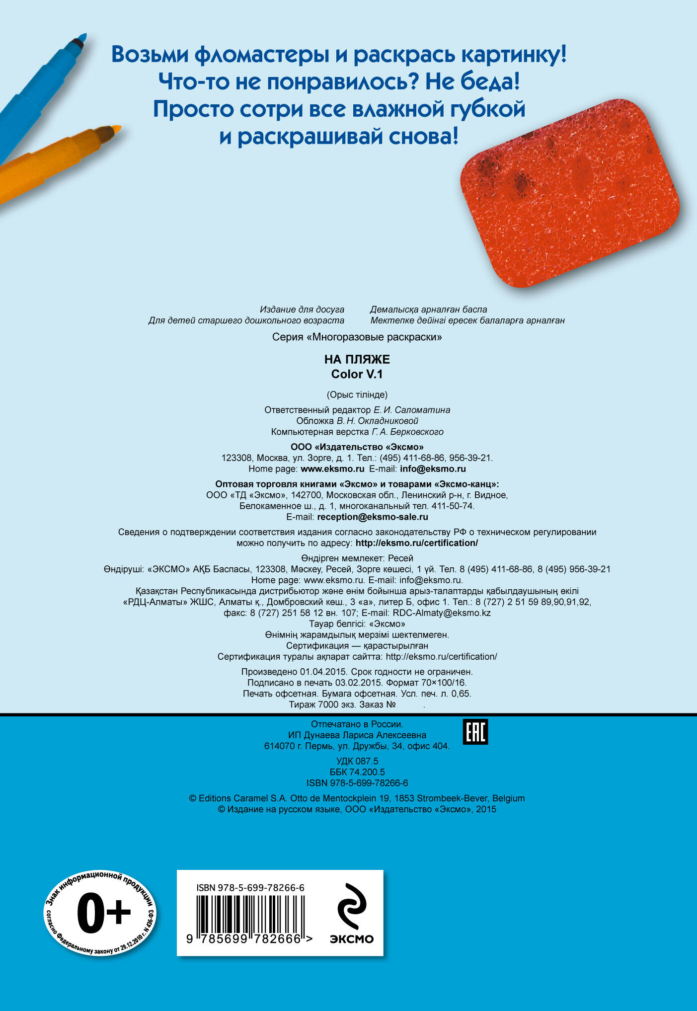 Новинка! Многоразовые раскраски для маленьких художников! Раскрашиваем фломастерами веселые картинки, а если что-то не понравилось, можно просто стереть все влажной губкой и раскрасить заново! Интересно, что фон, который малыши так не любят раскрашивать, уже цветной, так что юному художнику осталось разрисовать яркими фломастерами только забавных персонажей и интересные детали.| Издательство | Эксмо |