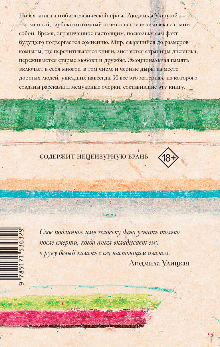 Новинка от автора бестселлера «Лестница Якова»! • Самая личная книга Людмилы Улицкой: мемуарные очерки и биографические зарисовки, исповедальные поэмы и сокровенные размышления. • Калейдоскоп жанров: поэзия и проза, сказки и притчи, рассказы и воспоминания. • Галерея образов: в книгу вошли тексты о живых и ушедших современниках, знаменитых и неизвестных широкому кругу.| Издательство | ИЗДАТЕЛЬСТВО "АСТ" |