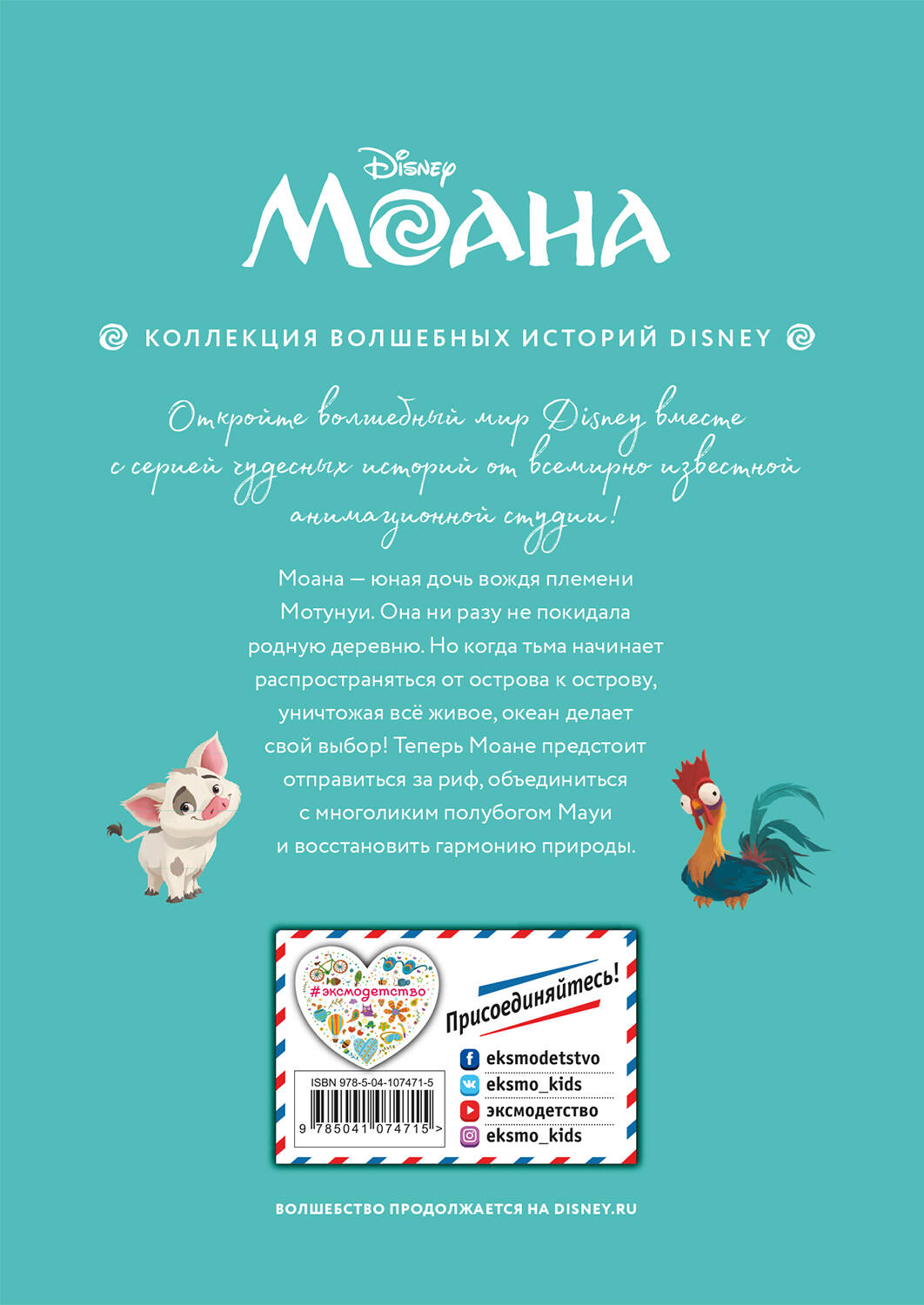 Моана - юная дочь вождя племени Мотунуи. Она ни разу не покидала родную деревню. Но когда тьма начинает распространяться от острова к острову, уничтожая всё живое, океан делает свой выбор! Теперь Моане предстоит отправиться за риф, объединиться с многоликим полубогом Мауи и восстановить гармонию природы.| Издательство | ООО "Издательство "Эксмо" |