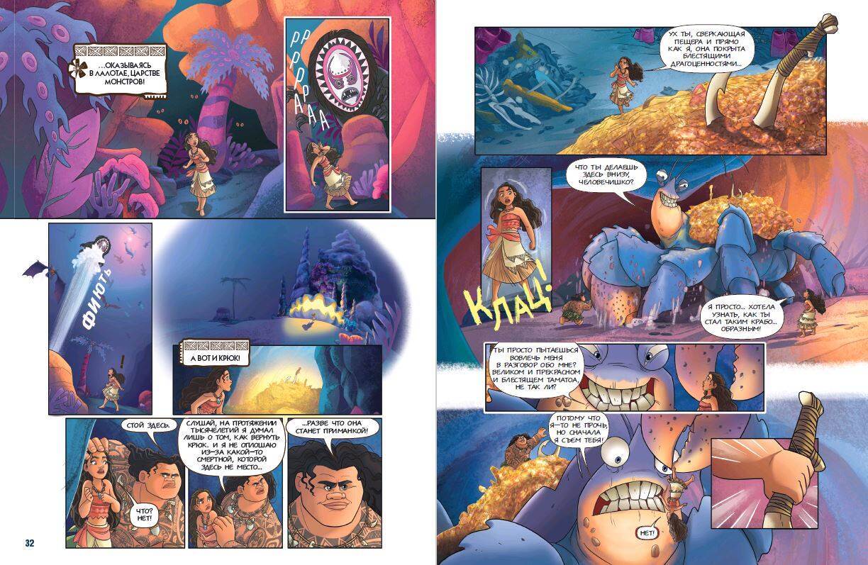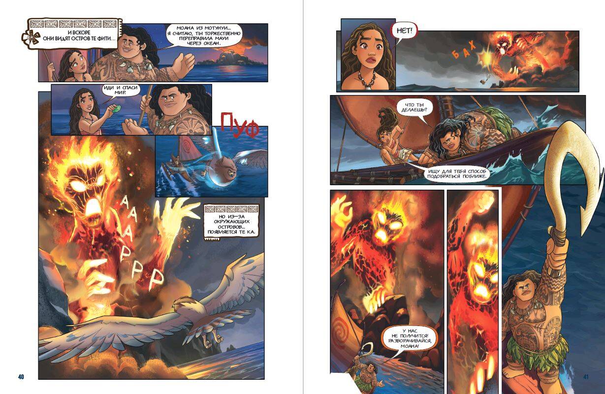 Оригинальная адаптация известного анимационного фильма студии Disney в формате детского графического романа. Древние легенды полинезийских племён увлекут вас. Жизнь на острове Мотунуи идёт своим чередом: благополучие и процветание - родной дом для Моаны и племени вождя Туи. Но тьма подбирается всё ближе, лишая жителей острова даров природы, а древняя легенда уже не кажется пустой выдумкой. Приходит время обратиться к прошлому своего племени, чтобы спасти остров и вернуть сердце Те Фити, похищенное многоликим полубогом Мауи. За рифом бушует океан, за рифом тьма поглощает всё живое, за рифом Те Фити томится в ожидании того, кто восстановит гармонию природы.| Издательство | ООО "Издательство "Эксмо" |