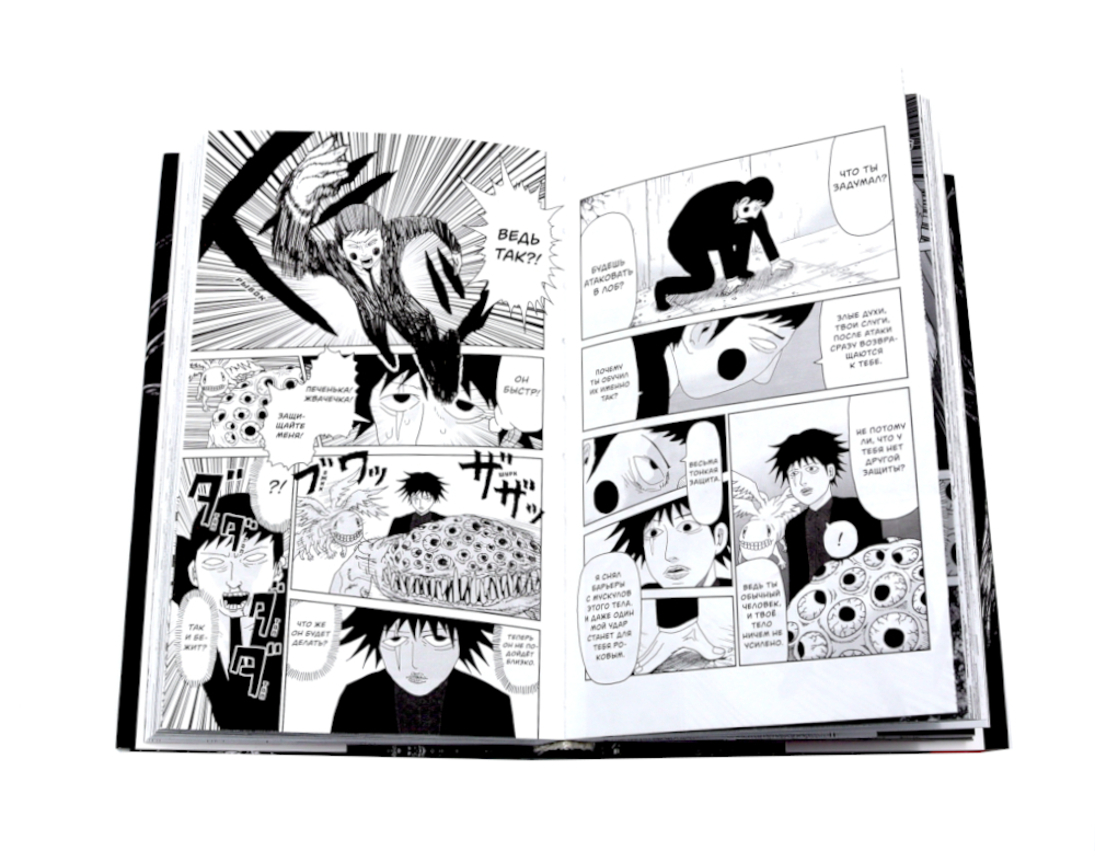 Комплект состоит из двух томов (3-4) манги ONE «Моб Психо 100». В третьем томе чтобы спасти похищенного брата, Мобу придётся сразиться со взрослыми и могущественными обладателями сверхспособностей. Вместе с Тэру и Ямочки он проникает в таинственную организацию «Коготь». Ученики средней школы (и один очень злой дух) против взрослых! Да начнётся настоящая битва экстрасенсов! В третью книгу русского издания вошли 5 и 6 тома оригинального японского издания. В четвертом томе на подработке жизнь у Моба бьёт ключом! В «Консультационном агентстве по призракам и тому подобному», где Моб работает экзорцистом на своего учителя Рэйгэна, шквал запросов. То развенчать городскую легенду о женщине с разорванным ртом, то изгнать демонов, которые буянят в школах и на фермерских полях, то охранять места силы и т. д. и т. п. Моб начинает меняться!| Издательство | Терлецки Комикс |