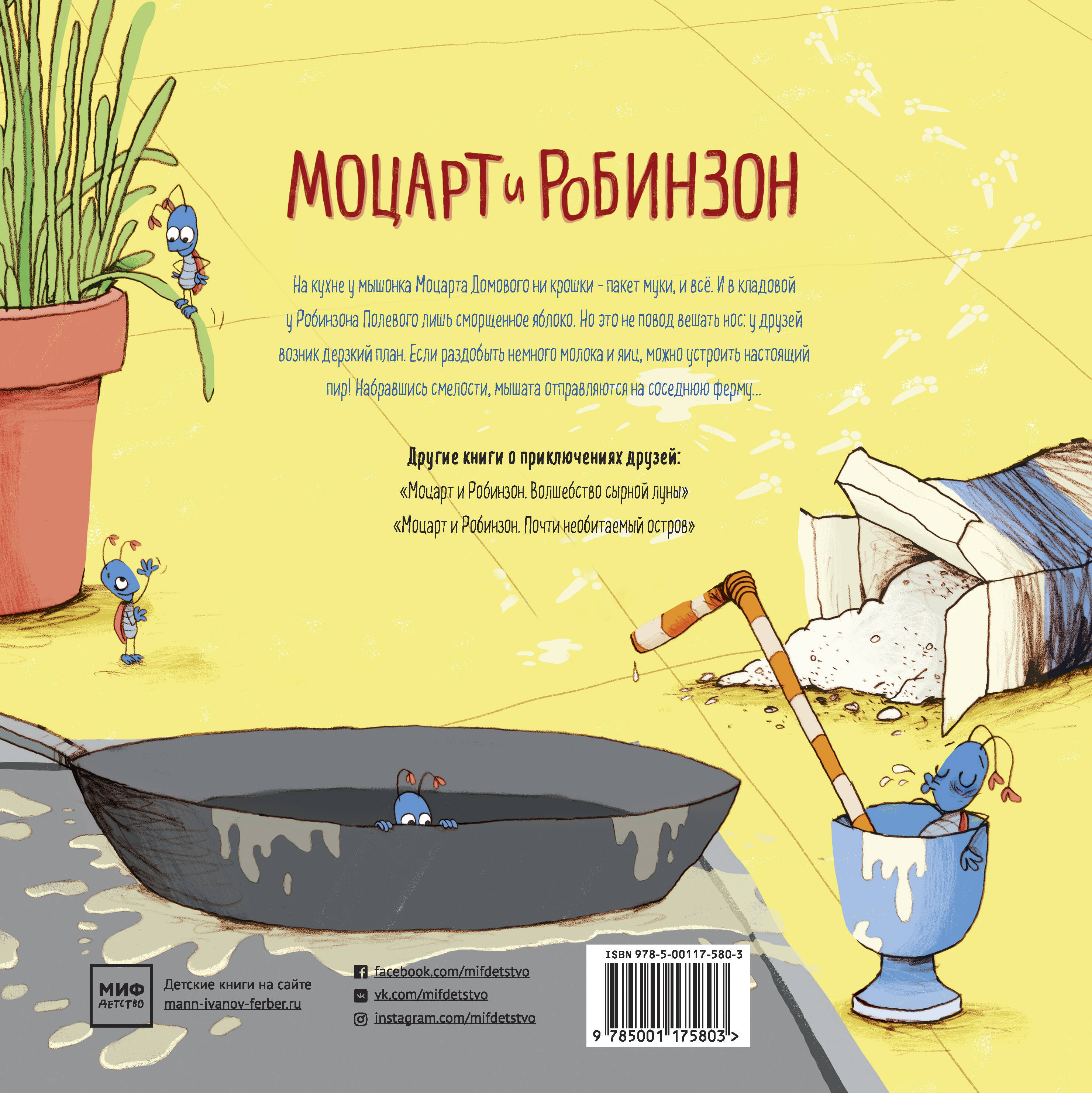 На кухне у мышонка Моцарта Домового ни крошки - пакет муки и все. И в кладовой у Робинзона Полевого лишь сморщенное яблоко. Но это не повод вешать нос: у друзей возник дерзкий план. Если раздобыть немного молока и яиц, можно устроить настоящий пир! Набравшись смелости, мышата отправляются на соседнюю ферму…| Издательство | Манн, Иванов и Фербер |