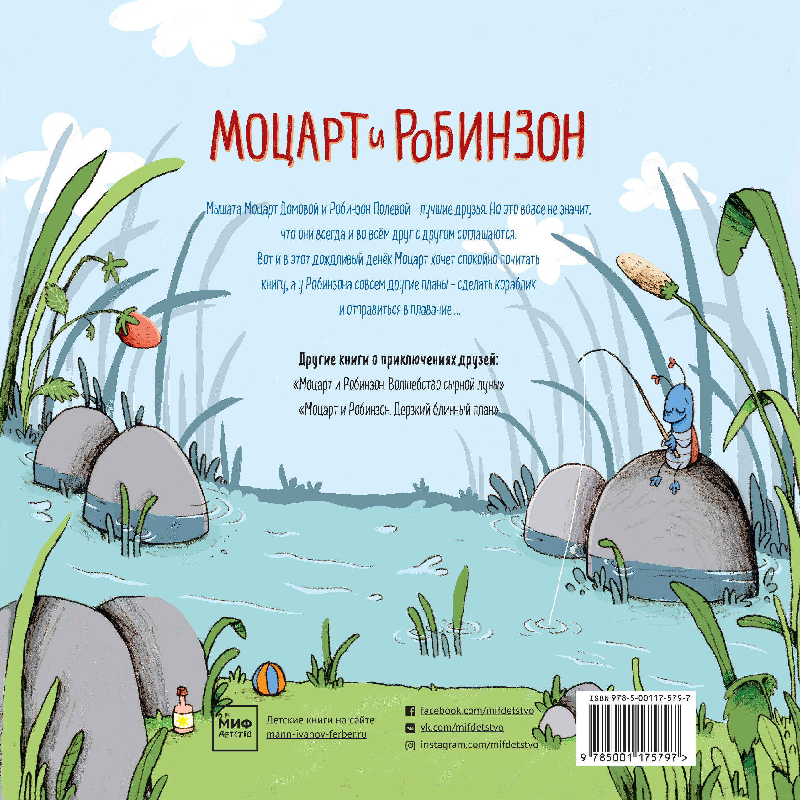 "Моцарт и Робинзон - два мышонка. Один живет в доме, другой в поле, но это не мешает их дружбе. Чтобы не скучать, они построили корабль и отправились в плавание по бурному ручью. Но путешествие окончилось внезапно - друзья оказались на необитаемом острове… Забавная история с чудесными иллюстрациями научит маленьких непосед и домоседов, как сохранить бодрое расположение в любой ситуации."