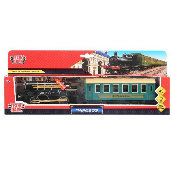 Аннотация: Модель металл поезд с вагоном 14см, инерц., свет+звук в русс. кор. Технопарк в кор.2*12шт