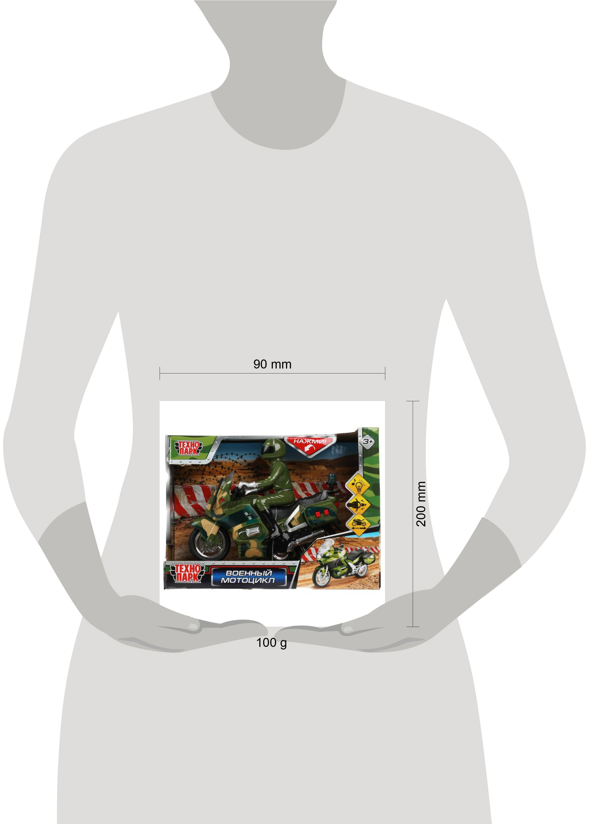Модель пластик свет-звук МОТОЦИКЛ ВОЕННЫЙ 15 см, 2 кноп, инерц, камуф, кор. Технопарк в кор.2*24шт