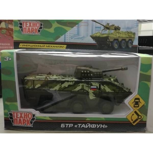 МОДЕЛЬ "ТЕХНОПАРК" МЕТАЛЛ. ИНЕРЦ. БТР "ТАЙФУН" ЗЕЛ.КАМУФ. 15СМ, ОТКРЫВ. ДВЕРИ В КОР. в кор.2*24шт