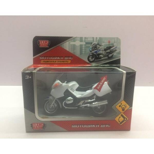 МОДЕЛЬ "ТЕХНОПАРК" МЕТАЛЛ. МОТОЦИКЛ ДПС, 12,5СМ, СВЕТ+ЗВУК, ПОДВИЖ. ЭЛЕМЕНТЫ В КОР. в кор.2*54шт