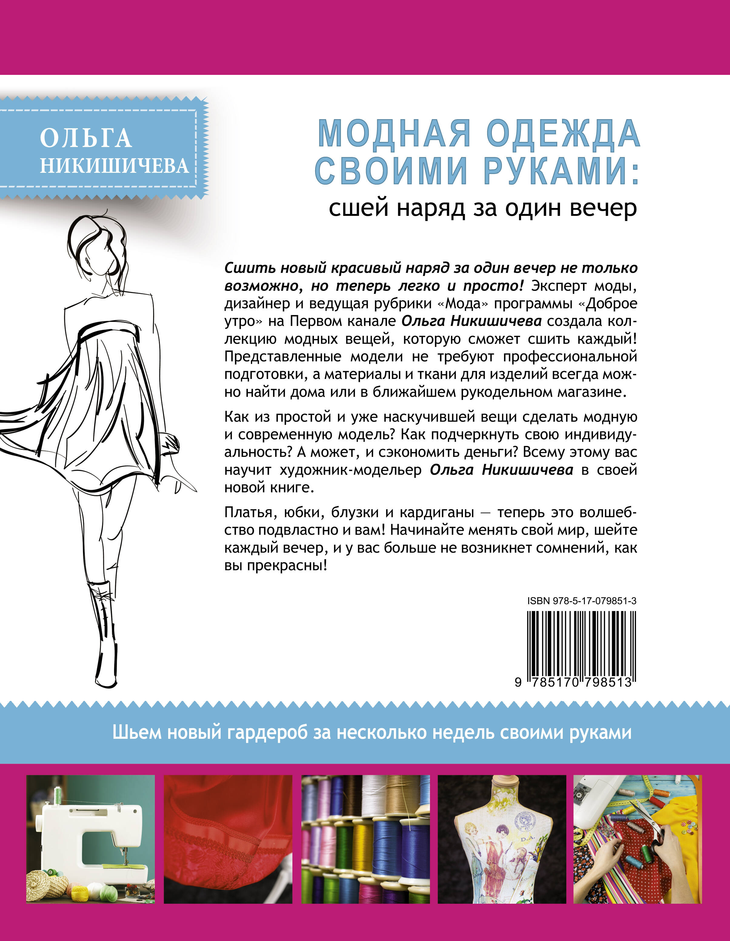 Кто не мечтал о шикарном вечернем платье, которое невозможно купить? Или у вас жизненно важная необходимость в новом пальто, а купить нет денег. Или надоели и стали скучными старые вещи в гардеробе. В любой ситуации ведущая рубрики «Мода» программы «Доброе утро» на Первом канале Ольга Никишичева считает, что это дело поправимое! Новый и красивый наряд за 1 вечер, сшитый своими руками - что может быть лучше? Хорошая ткань обойдется в пять раз дешевле, чем покупка готового изделия в магазине, а иногда и просто для обновки будет достаточно старых вещей из своего гардероба. Модели, представленные в книге, не требуют профессиональной подготовки, с ними справится каждый! Если вы все еще мечтаете обновить свой гардероб, не откладывайте это на завтра! Шейте каждый вечер, и уже через пару недель у вас не останется сомнений, как легко и просто создавать красивые и модные вещи.| Издательство | ИЗДАТЕЛЬСТВО "АСТ" |