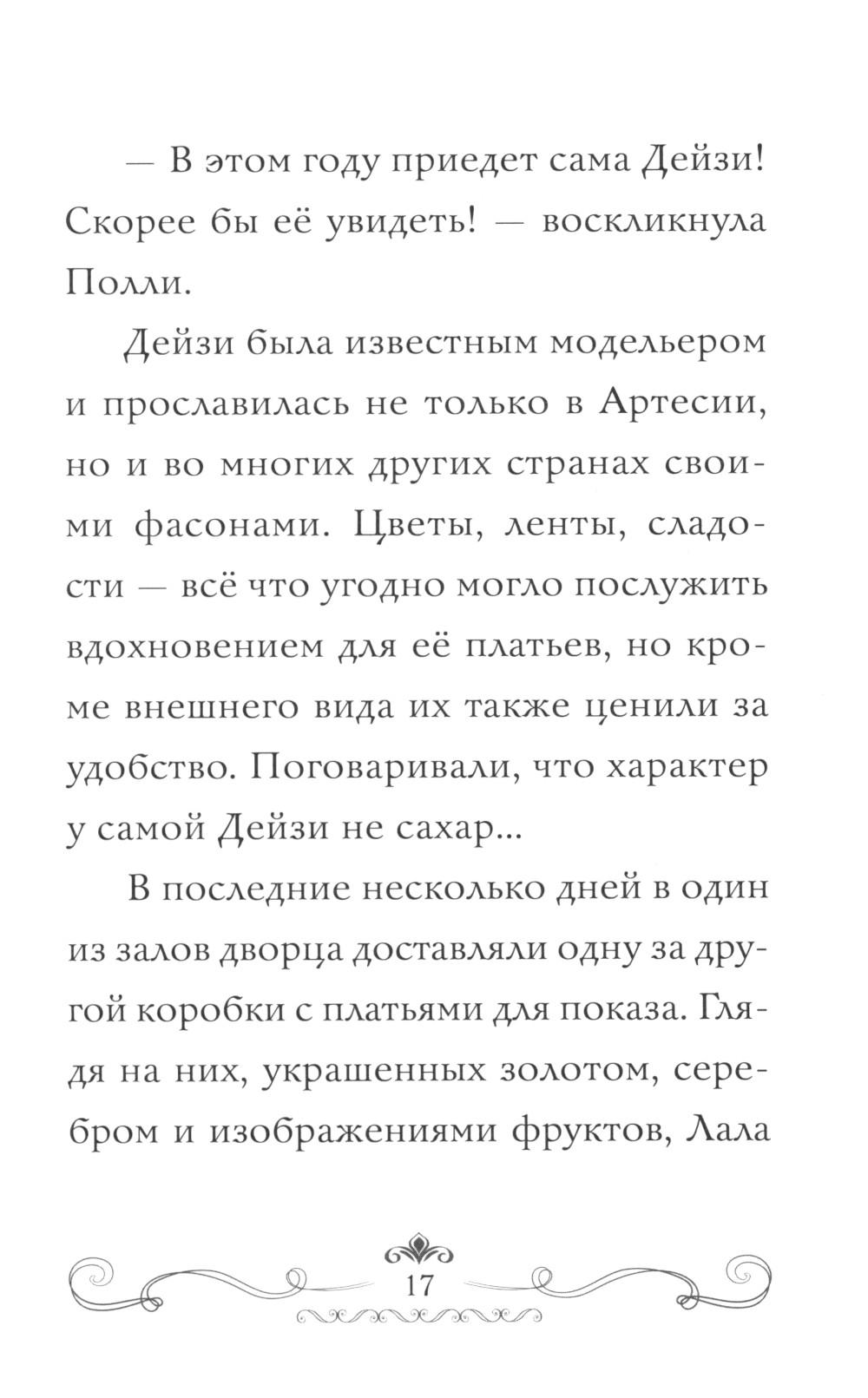 Каждый год в королевстве Артесия проходит показ мод. Лала, Полли и другие жители ждут его с нетерпением! Модницы участвуют в параде под живую музыку, а зрителям раздают сладости. В этом году на показе будет присутствовать сама госпожа Дейзи, самый известный модельер. Но кто-то украл все платья для модного парада, а вместе с ними исчезла и Лала! Вдруг это связано с волшебным медальоном принцессы? И что за таинственные незнакомки прибыли в Артесию?| Издательство | Махаон |