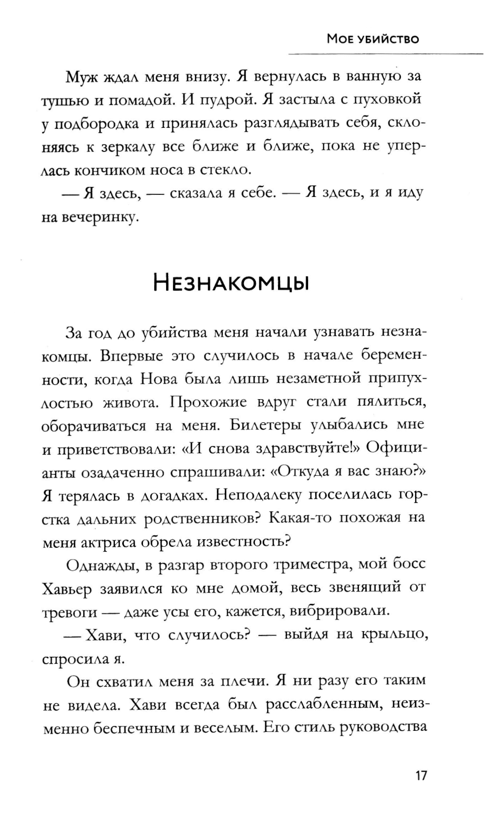 Луиза - счастливая жена и мать ангелочка. А еще жертва серийного убийцы. Государственная организация решила оживить - а точнее, клонировать - ее и еще четырех женщин, пострадавших от рук маньяка. Лу привыкает к новой «прежней» жизни, ходит на групповые сессии и пытается вспомнить, что предшествовало трагедии. Однако ее ждет неприятное открытие. В мире, где никому нельзя доверять, только она сама может расследовать свою смерть… «Мое убийство» - это увлекательный спекулятивный триллер, который сможет удивить даже самых искушенных любителей жанра.