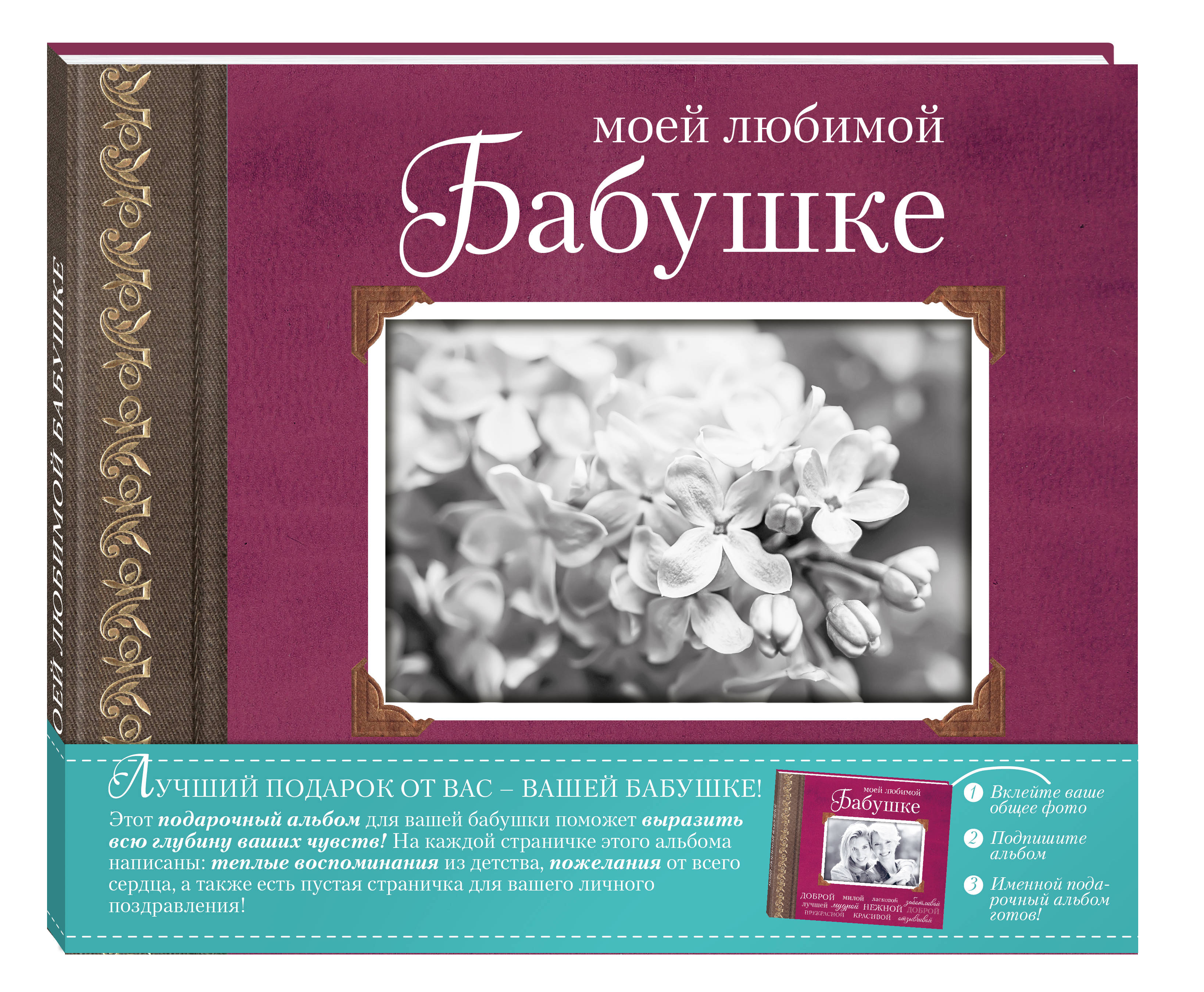 Этот подарочный альбом поможет вам выразить всю глубину ваших чувств к бабушке, то, что не решались или так часто просто не успеваем сказать. Вы только вклеиваете фотографию вас с бабушкой и подписываете альбом и он становится именным. Такой индивидуальный подарок обязательно оценит ваша бабушка!| Издательство | ООО "Издательство "Эксмо" |